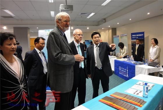 二、中国驻新西兰徐建国大使、驻奥克兰廖菊华总领事、驻悉尼总领事馆白刚教育参赞分别出席了教育展并参观我校展台,以及向参展外宾介绍我校。图为中国驻新西兰徐建国大使向外宾介绍我校。