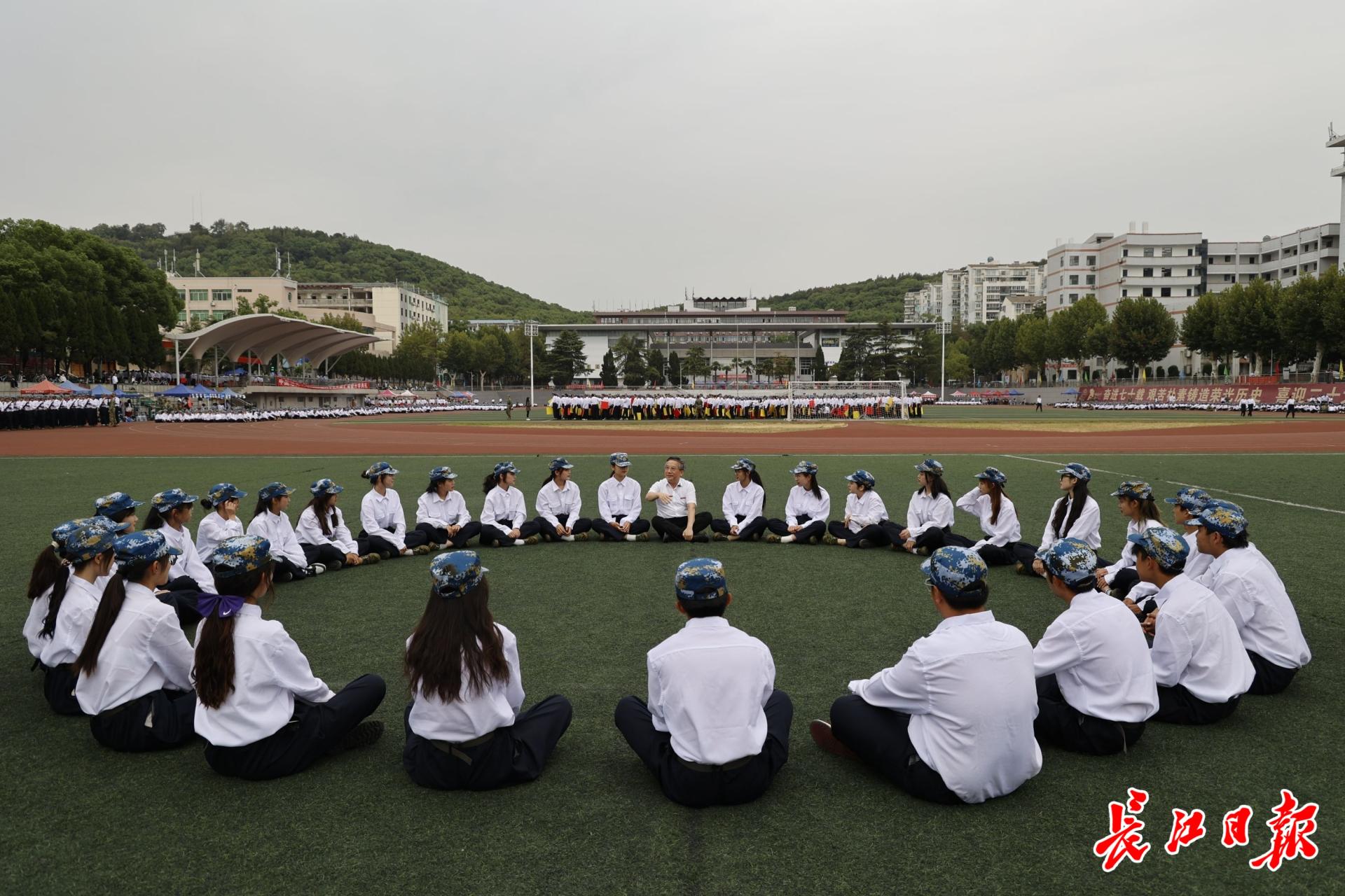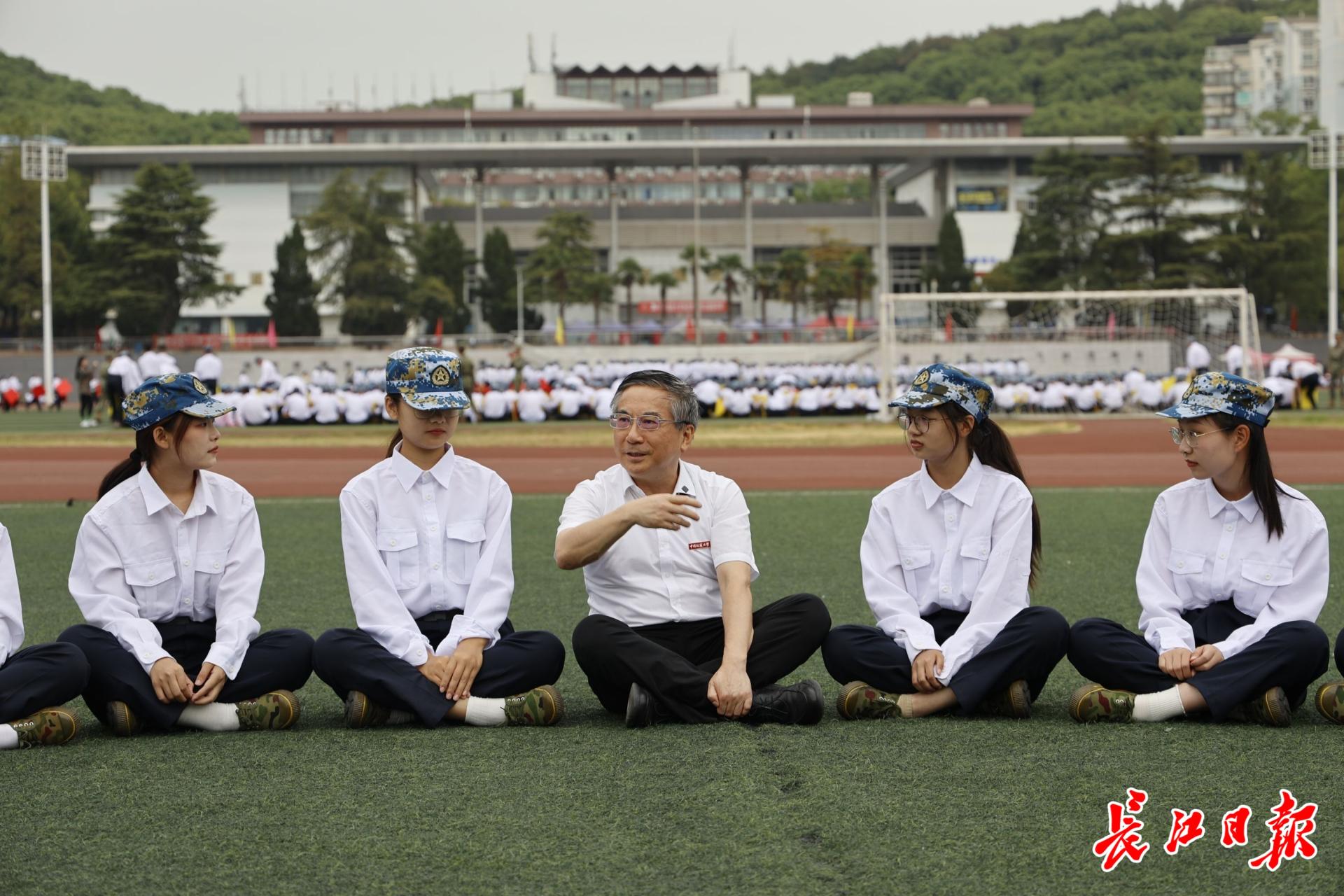 开云app登录入口(武汉)校长王焰新院士和大一新生围坐操场,讲述校歌历史,一同吟唱校歌。