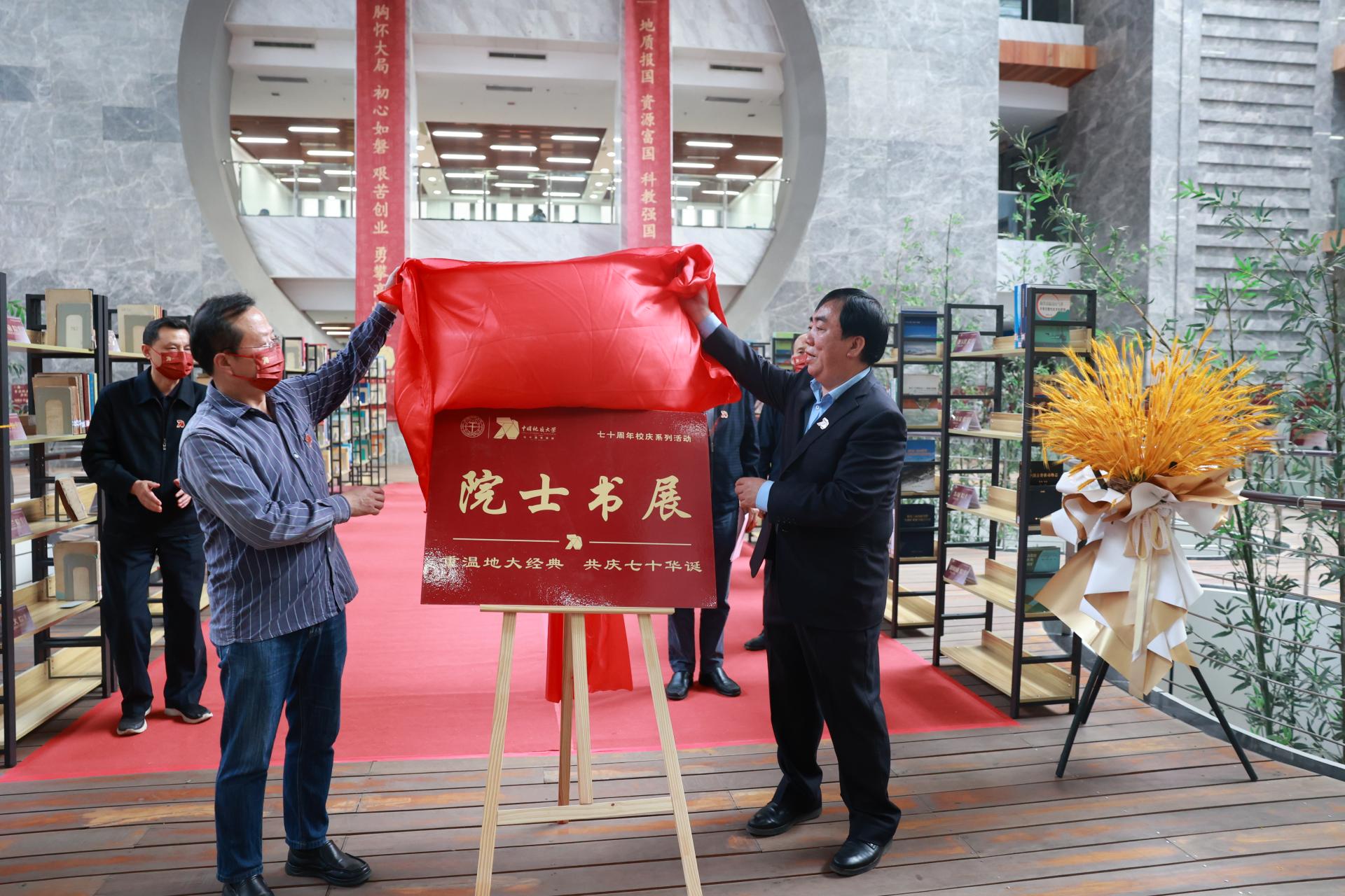 记者在该校南望山校区图书馆二楼看到,500余本馆藏著作涵盖了地质、工程、环境等领域,按照70位科学家入选院士的时间一一排列。与此同时,70位院士的生平简介也以展板的形式展出。