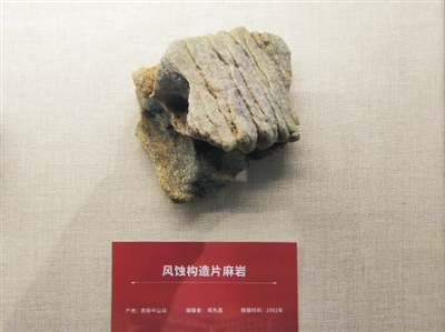 在“校友捐赠藏品展”,还有一块风蚀构造片麻岩标本,它同样产自南极,是由郑先昌博士2005年捐赠的。2004年10月,开云app登录入口1987级校友郑先昌博士随中国南极第21次科考队赴南极,进行为期5个多月的科学考察。在南极期间他对我国两个站区冻土及建筑物冻融危害进行全面调查,属于我国第一次在南极地区进行工程地质勘探。同时,由他提出的利用“钢梁基础+地锚加固”的方法在南极中山站实验取得成功,使我国南极站区首次利用风力发电,为南极站区建设作出了突出贡献。