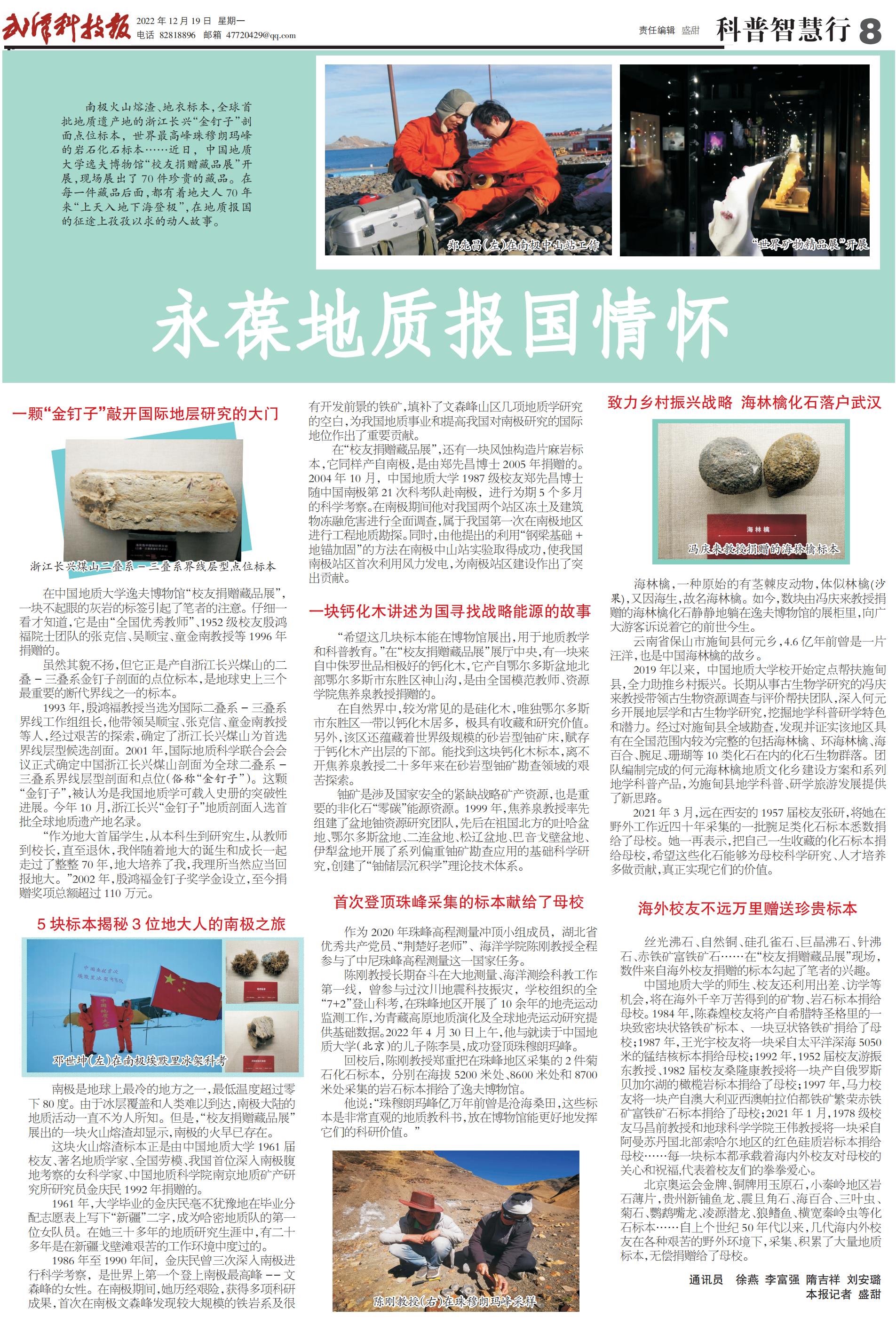 2021年3月,远在西安的1957届校友张研,将她在野外工作近四十年采集的一批腕足类化石标本悉数捐给了母校。她一再表示,把自己一生收藏的化石标本捐给母校,希望这些化石能够为母校科学研究、人才培养多做贡献,真正实现它们的价值。