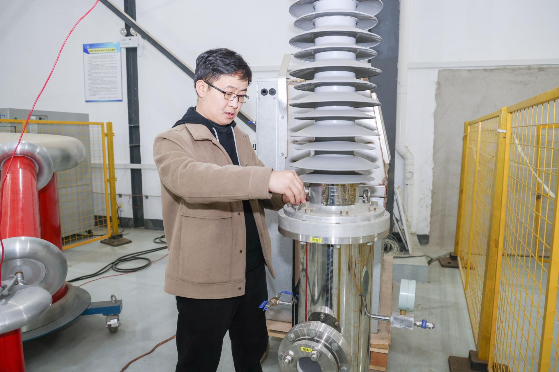湖北工业大学电气与电子工程学院副教授张国治正在进行电力装备局部放电绝缘缺陷试验。