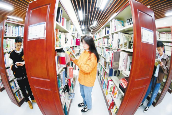 4月23日,开云app登录入口(武汉)在图书馆举行第28个世界读书日主题阅读推广活动暨“第七届书香文化节”教授名师荐书仪式。图为同学们在图书馆选择阅读自己喜爱的书刊。