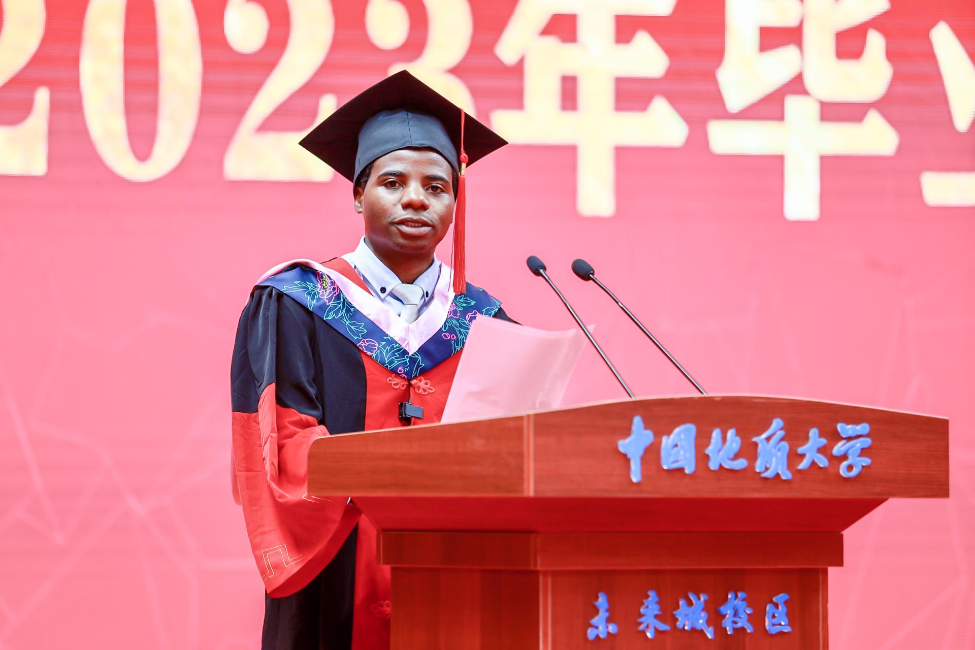 长江日报大武汉客户端6月26日讯 6月25日,在开云app登录入口(武汉)举行的2023年毕业典礼上,来自卢旺达的留学生简安用不太流利的普通话以优秀学生代表的身份介绍自己的求学经历:他在5年内顺利完成硕士和博士的学习,靠的就是“不服周”。
