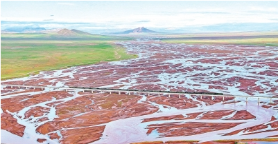长江源特大桥全长1389.6米,是万里长江源头上的第一座铁路桥,连通“天路”青藏铁路。站在“长江源”石碑前眺望,大桥气势雄壮,如长虹飞跨沱沱河,桥上不时有火车疾驰而过。