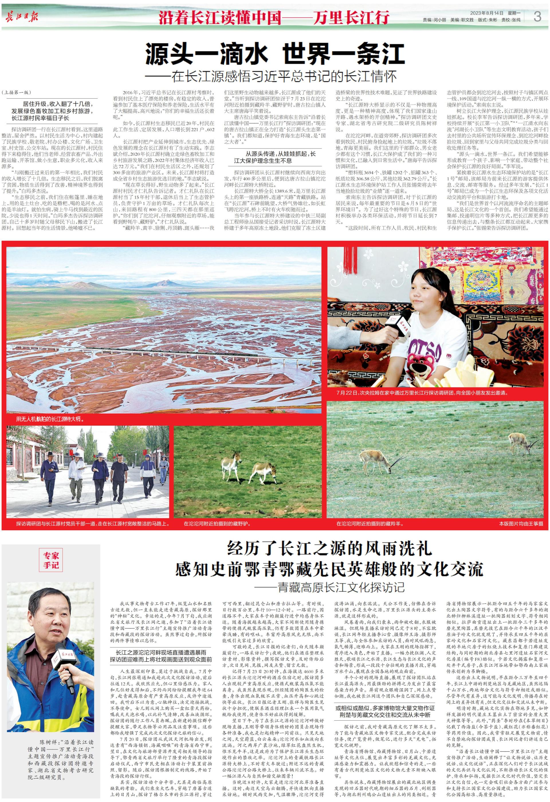 ■ 总书记拥抱的长江源村小女孩对探访调研团说:让我们一起携手保护长江