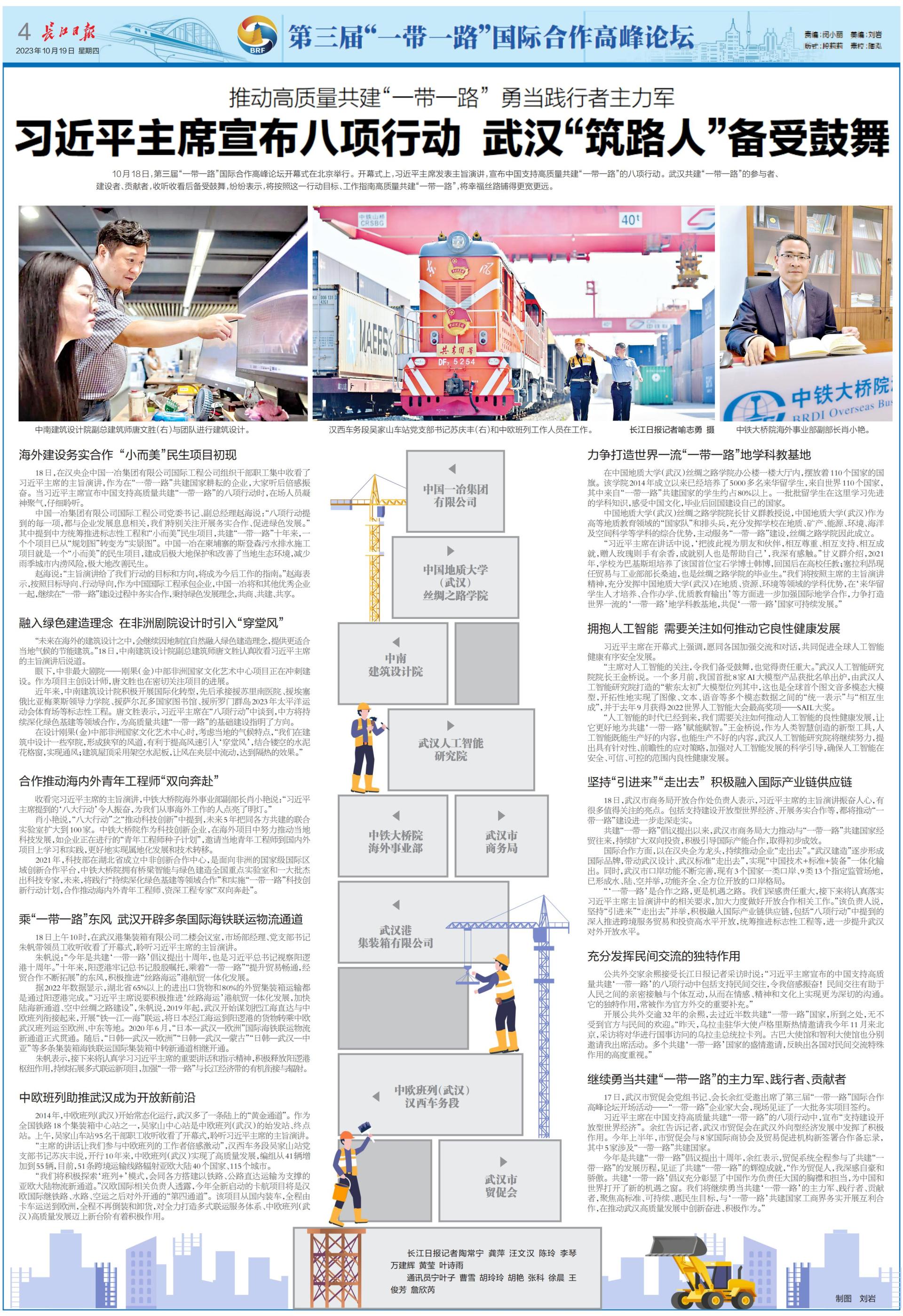 链接:长江日报 - 习近平主席宣布八项行动<BR/> 武汉“筑路人”备受鼓舞 (cjn.cn)