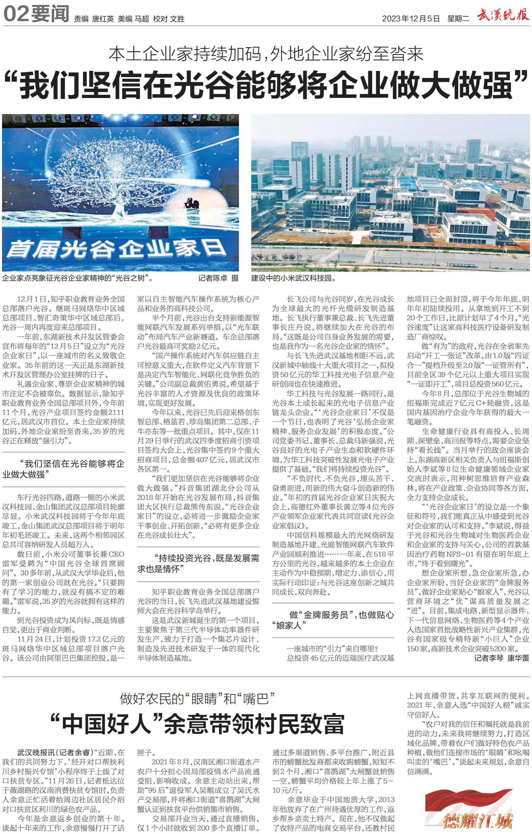链接:武汉晚报 - “中国好人”余意带领村民致富 (cjn.cn)