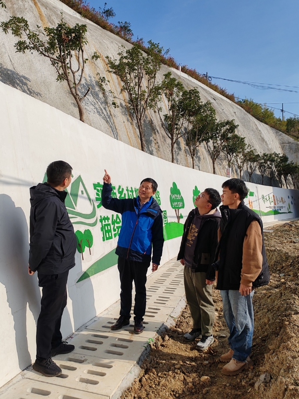 地质滑坡治理中,人文和审美的要素也不能忽略。2023年,徐光黎的研究团队在湖北省武当山旅游经济特区蔡家院不稳定斜坡和丹江口市杨家沟1、2号滑坡的勘查设计工作中,结合乡村振兴,特意考虑了当地文化墙以及绿化工程的设计。为了避免挡土墙上的排水孔外露影响文化墙的美观,使用了隐藏式的塑料软管,凸显了地灾防治与生态环境的巧妙结合。