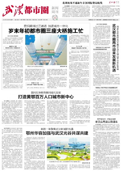 武汉新城强势崛起。武鄂黄黄快速道路加快推进,“横一”改扩建工程、“纵一”S257品质提升工程、“横三”武黄高速改扩建工程先后开工。武阳高速建成通车,新港高速双柳长江大桥及连接线工程征拆工作全面完成,南岸主塔高度率先突破125米,武鄂黄黄“枢纽”作用更加凸显。红莲湖数码城及高科技产业孵化中心(二期)主体完工,光谷东数字经济产业园成势见效。湖北文旅洪宾酒店开业运营,中央核心绿轴公园(一期)、岱家山体育公园建成开放。“武鄂同城公交卡一卡通”正式上线。杏福园旅游景区被纳入武汉都市圈旅游年卡范围。与武汉签订教育、文旅合作协议。410项高频政务服务事项实现“跨域通办”。