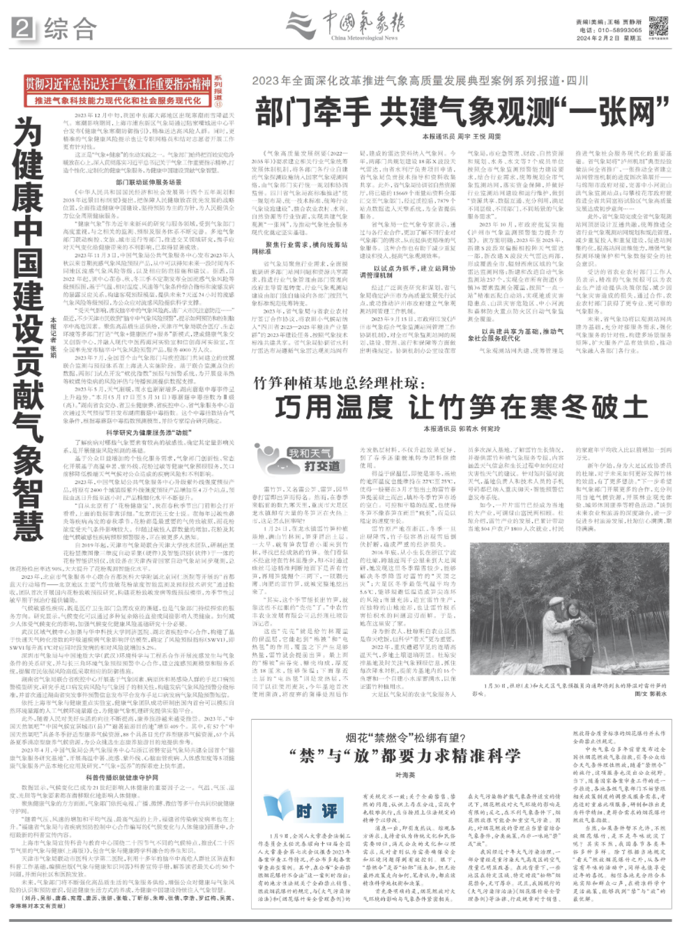 2023年4月,中国气象局公共气象服务中心与浙江省磐安县气象局共建全国首个“健康气象服务研究基地”,开展高温中暑、流感、紫外线、心脑血管疾病、人体感知度等5项健康气象服务产品本地化应用及研究,“气象+医养”的探索走上快车道。科普传播织就健康守护网