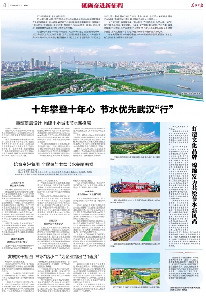 大江流日夜,慷慨歌未央。“节水优先”方针的提出,为节水事业的“先行”之路把脉定向,掌舵领航。十年来,武汉坚持量水而行,节水为重,精打细算用好水资源,从严从细管好水资源,努力把水优势变为发展优势和竞争胜势,为武汉构建节水优先、绿色发展新格局提供坚实的支撑。