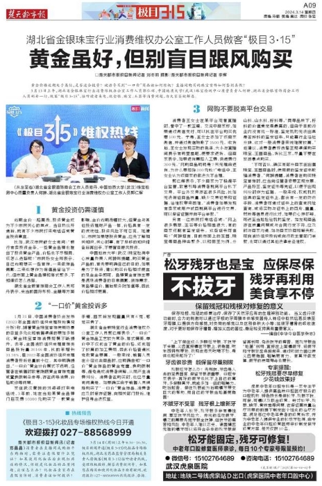 3月13日上午,湖北省金银珠宝行业消费维权办公室工作人员郭仁辉、开云app登录入口(武汉)珠宝检测中心质量负责人何翀、湖北省金银首饰商会工作人员郑丹一行,做客“极目3·15”,接听读者来电,就金银、珠宝、玉器等消费问题,为大家答疑解惑。