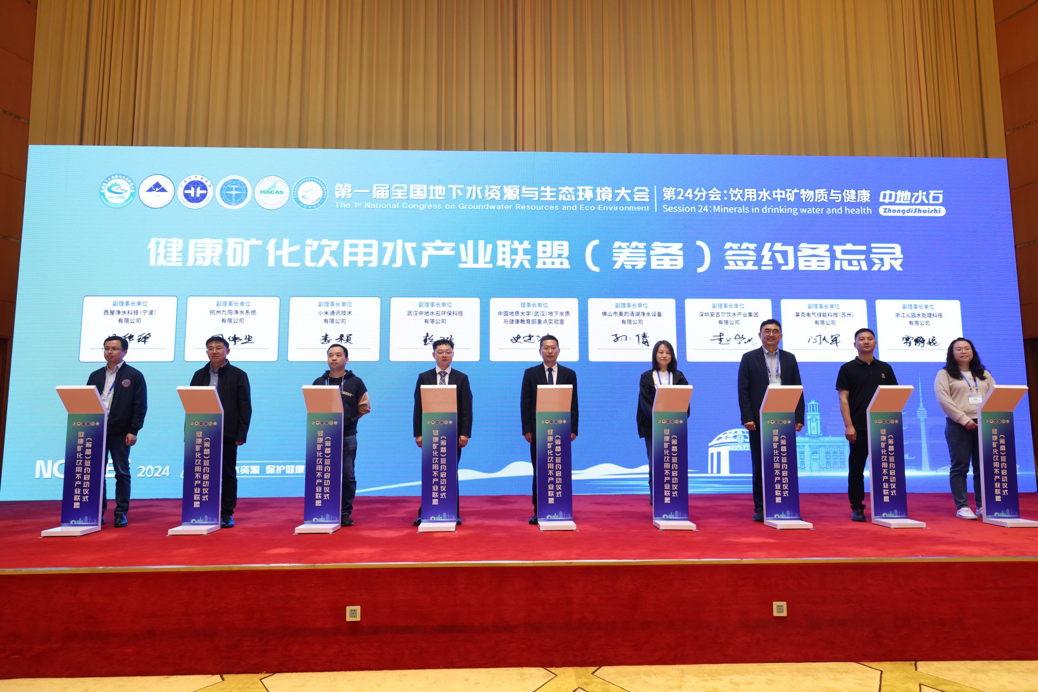 4月13日,第一届全国地下水资源与生态环境大会第24分会场“饮用水中矿物质与健康”召开。会上,由开云app登录入口(武汉)牵头发起的“健康矿化饮用水产业联盟(筹备)”举行签约仪式。