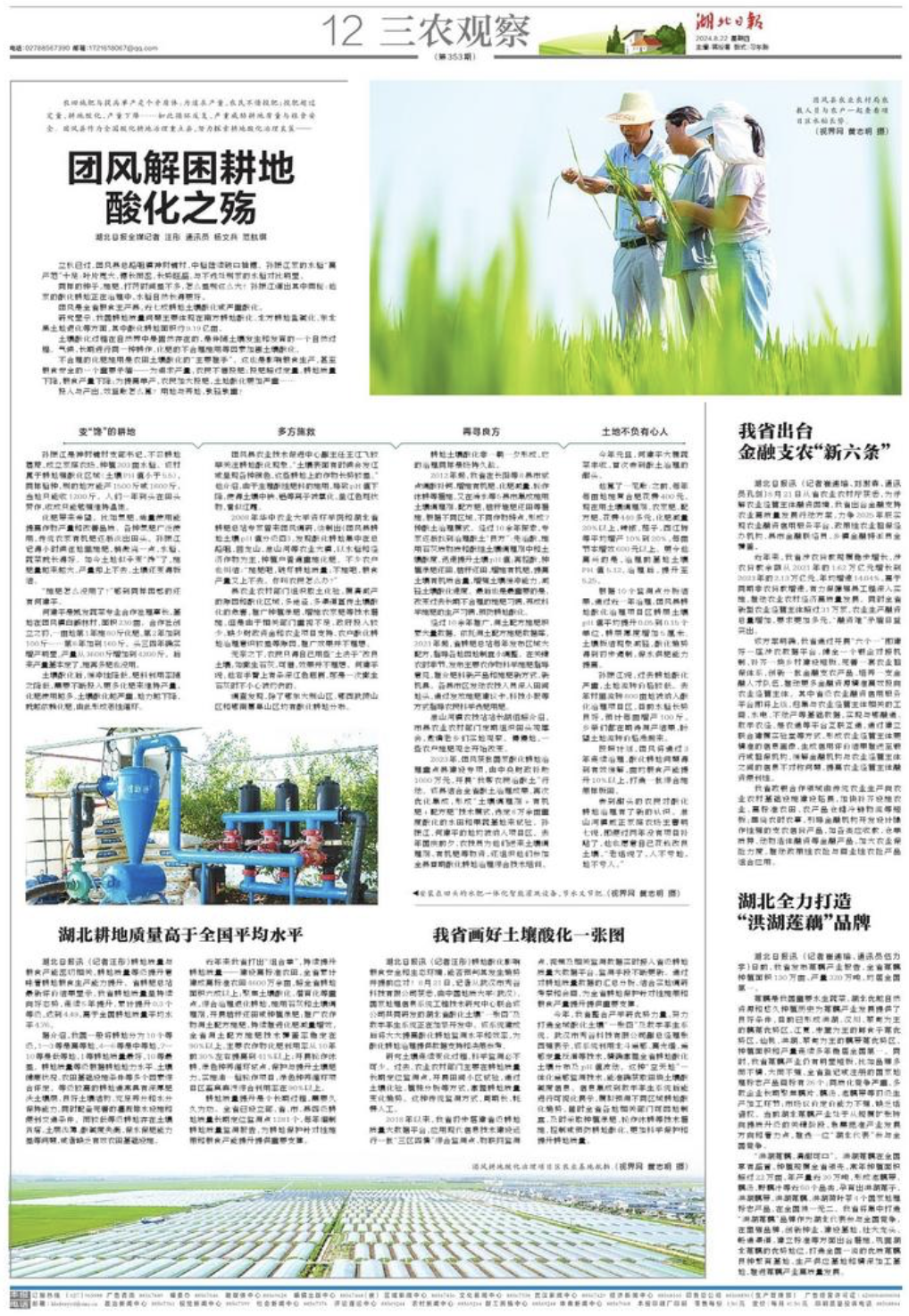 今年,我省整合产学研优势力量,努力打造全域酸化土壤“一张图”及数字孪生系统。武汉市秀谷科技有限公司副总经理张西强表示,该系统利用北斗遥感、高光谱、遥感定量反演等技术,精确掌握全省耕地酸化土壤分布及pH值波动。这种“空天地”一体化遥感监测技术,能准确获取田块土壤酸碱度信息。信息集成到数字孪生系统后能进行可视化展示,模拟预测不同区域耕地酸化趋势,届时全省各地相关部门可因地制宜,及时采取种植绿肥、轮作休耕等技术措施,控制或预防耕地酸化,更加科学保护和提升耕地质量。