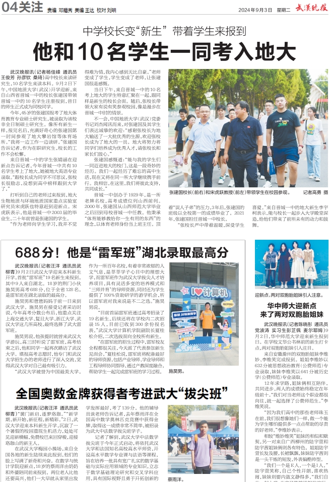 链接:武汉晚报-他和10名学生一同考入地大 (cjn.cn)