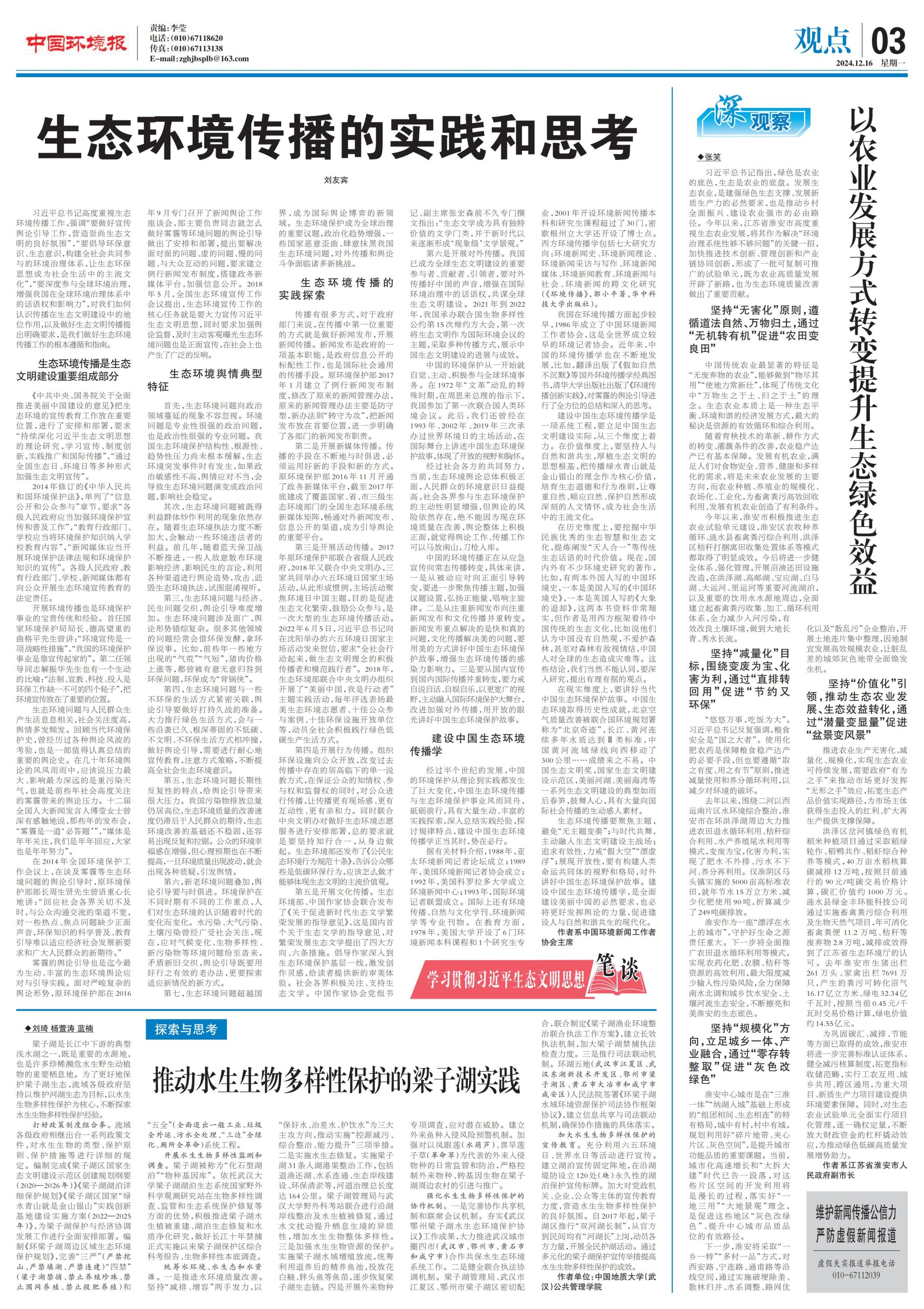 打好政策制度组合拳。流域各级政府相继出台一系列政策文件,对水生生物的类型、保护原则、保护措施等进行详细的规定。编制完成《梁子湖区国家生态文明建设示范区创建规划纲要(2020—2026年)》《梁子湖湖泊详细保护规划》《梁子湖区国家“绿水青山就是金山银山”实践创新基地建设实施方案(2022—2025年)》,为梁子湖保护与经济协调发展工作进行全面安排部署。编制《环梁子湖周边区域生态环境保护规划》,完善“三严”(严禁挖山、严禁填湖、严禁违建)“四禁”(梁子湖禁捕、禁止养殖珍珠、禁止围网养殖、禁止投肥养殖)和“五全”(全面退出一般工业、垃圾全外运、污水全处理、“三边”全绿化、厕所全革命)系统工程。