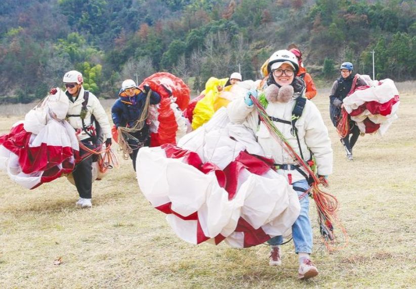 如今,仅湖北境内,黄石、荆门、宜昌、咸宁等地,均有滑翔伞飞行体验基地。在黄石大冶毛铺,高峰时每年有千名体验者“放飞”滑翔,最小体验者仅有3岁,最大体验者年龄超过60岁。