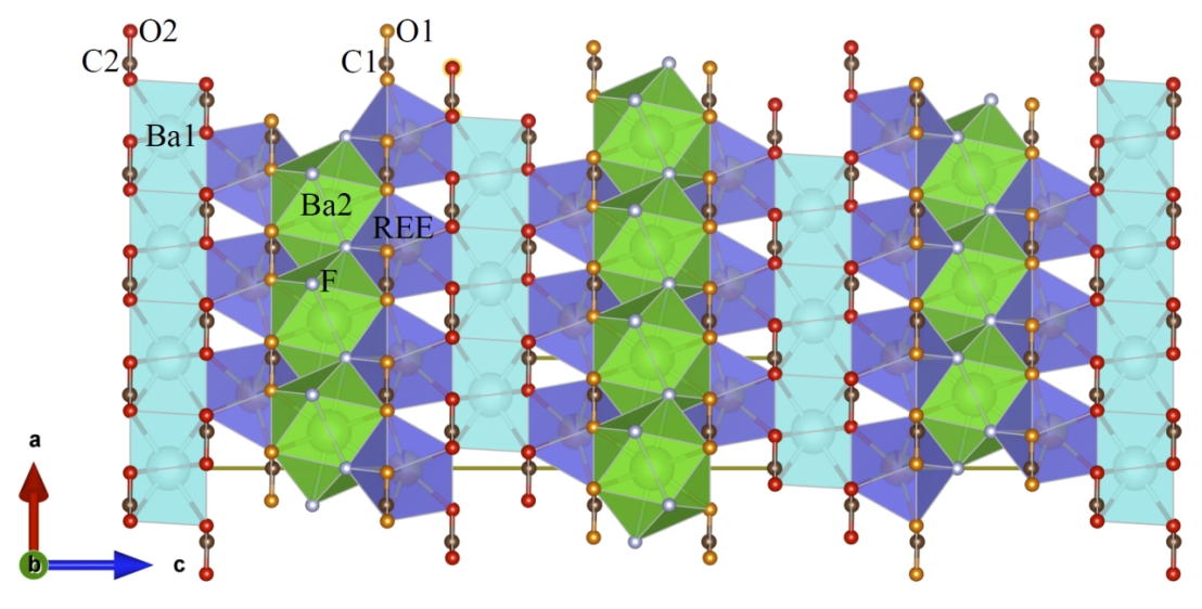 研究团队在开展项目研究时,通过系统野外地质调查及地球化学分析,揭示了白云鄂博矿床的稀土元素配分模式及赋存规律。在此基础上,建立了白云鄂博矿床的矿体分带特征及矿床成因模型。该模型揭示了稀土元素和铁在碳酸岩岩浆分异演化过程中选择性富集的机制。在该成矿模型的理论指导下,研究团队通过矿物微区分析新发现了氟碳钕矿、钕独居石、钕黄河矿三种白云鄂博的新稀土矿物。其中,钕黄河矿获得了IMA-CNMNC全票批准,成为白云鄂博矿床中第25种新矿物。