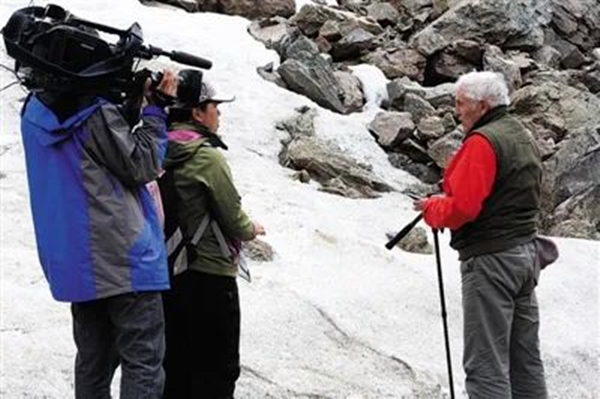 在播出的纪录片中,可以看到画面中一位老人从布满碎石的羊肠小道上走过,身边是万丈悬崖,不时有山石滚落;他拄着登山杖一步步下到4000米深的冰川谷底,双脚都已麻木……就这样,人们不仅记住了新疆的美丽,也记住了这个充满魅力的老头儿。