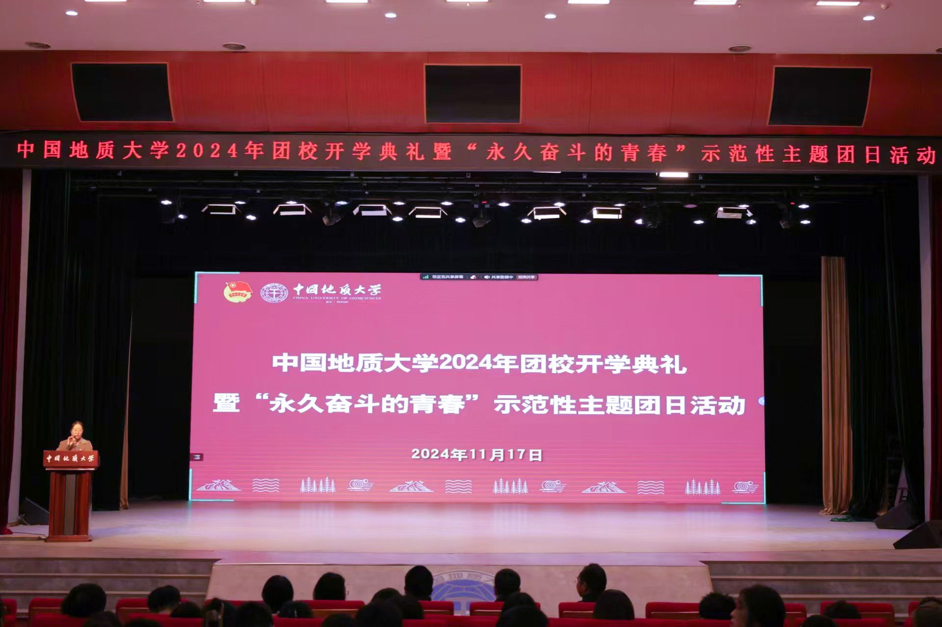 地大新闻网讯(通讯员 田悦宏 陈文婷 摄影 邢梁依脉 丁玉清)11月17日,我校2024年团校开学典礼暨“永久奋斗的青春”示范性主题团日活动两校区同步举行。校党委副书记王甫,党委组织部、研究生院(党委研工部)、校团委等相关单位负责人,各学院团委书记,团校各班次学员共计1000余人参加活动。校团委副书记刘明辉主持开学典礼。