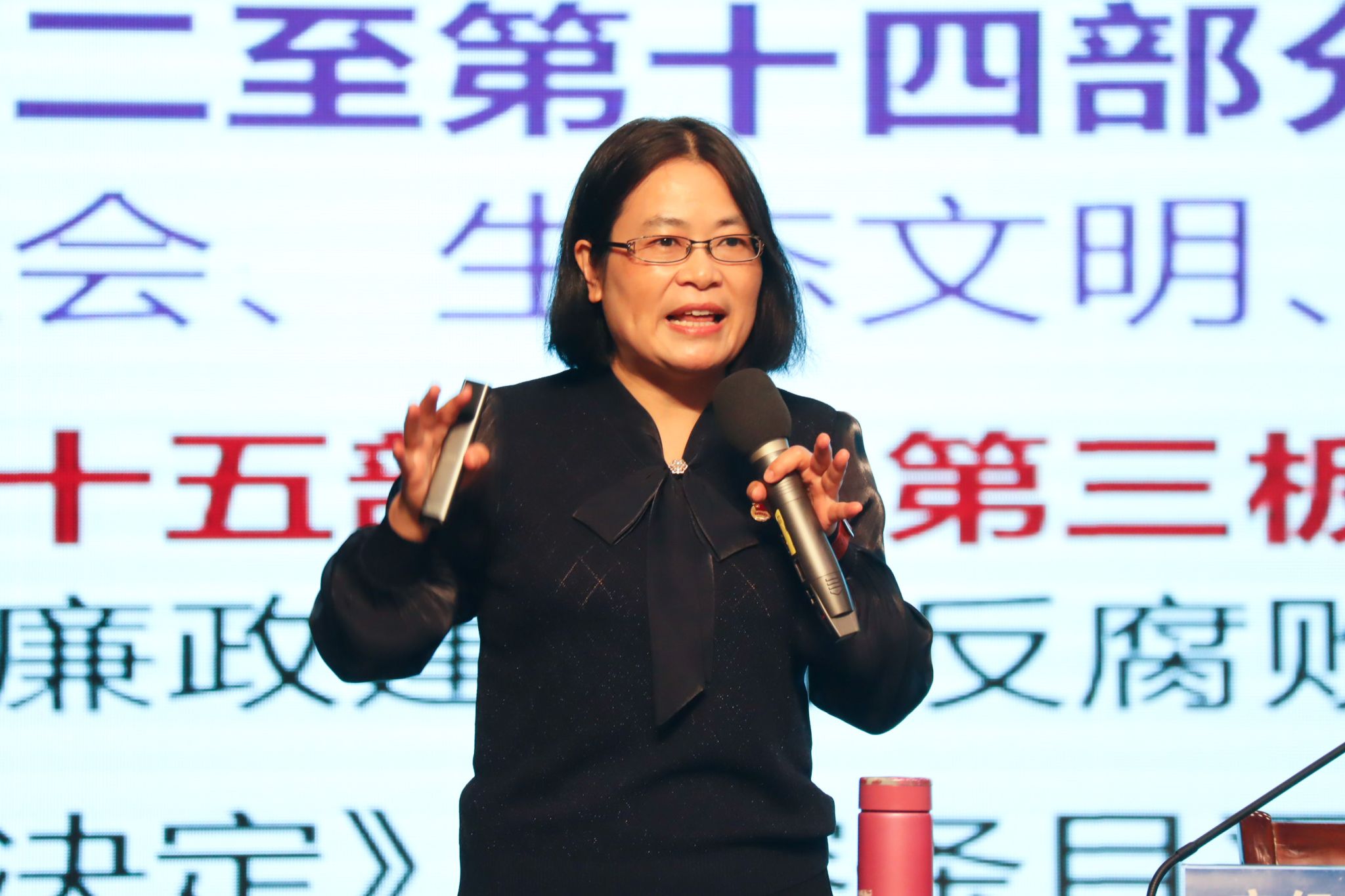 开学典礼后,进入集中授课环节。在政治理论学习单元,华中科技大学马克思主义学院教授、博士生导师文红玉讲授专题团课《学习贯彻党的二十届三中全会精神》。她从回顾历次党代会和党的历届全会内容、党的二十届三中全会文本分析、全会召开背景、全会具体要点分析等方面解读党的二十届三中全会精神。