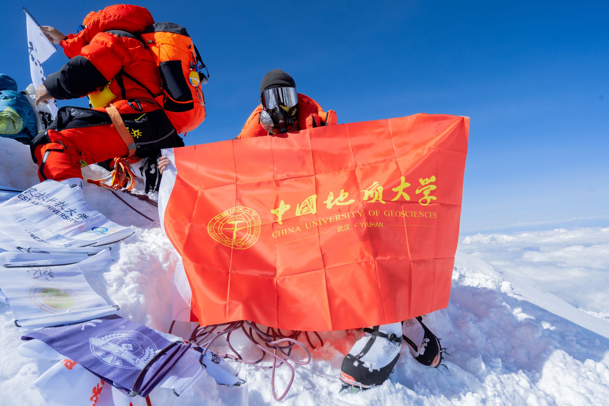 地大新闻网讯 (记者 王俊芳 通讯员 李伦)5月21日上午10时20分,我校体育学院2021级硕士研究生周千龙,成功从北坡登顶海拔8848.86米的世界最高峰——珠穆朗玛峰。