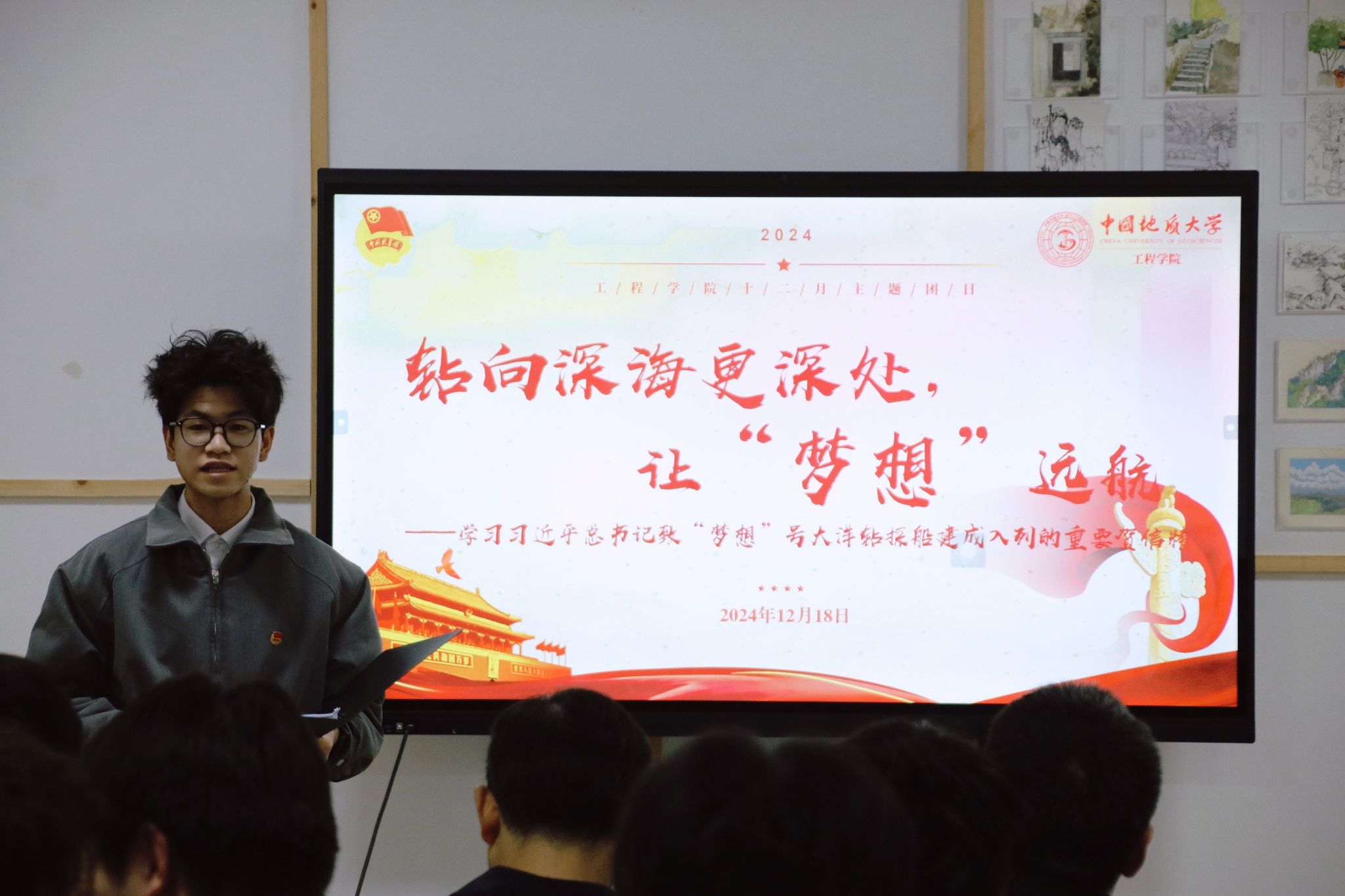地大新闻网讯(通讯员 张怡悦 李想 陈文婷)为深入学习贯彻习近平总书记致“梦想”号大洋钻探船建成入列的贺信精神,激励团员青年立报国强国大志向、做挺膺担当奋斗者,12月18日,我校12月示范性主题团日在工程学院举行。校党委副书记王甫,校团委、工程学院党委和团委负责人,勘察与基础工程系本硕博团员代表参加活动。活动还邀请了“梦想”号大洋钻探船重要子系统建造者宁伏龙教授、孙嘉鑫副教授和胡晨博士参加分享。