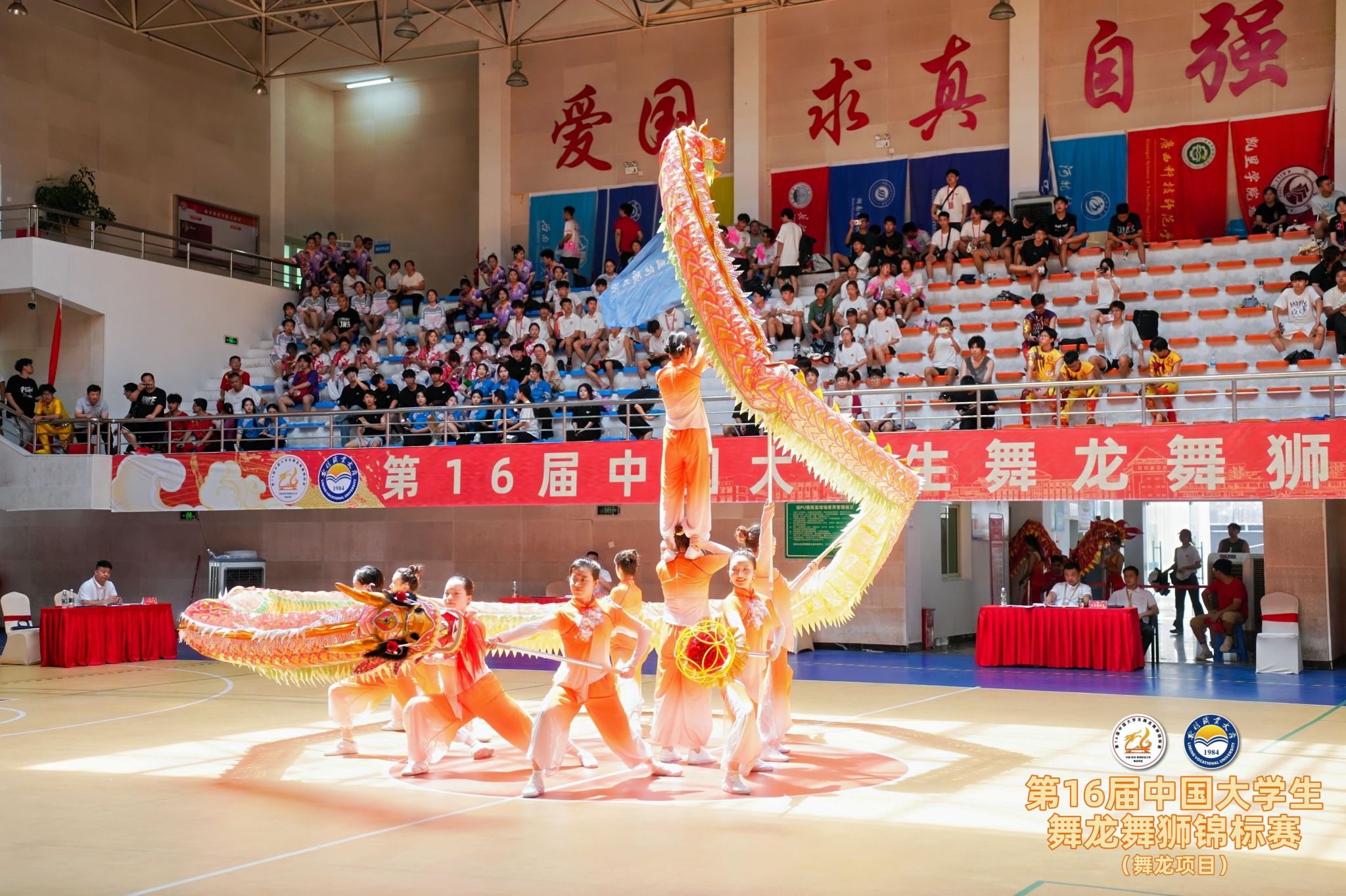 学生在全国大学生舞龙舞狮锦标赛上竞技