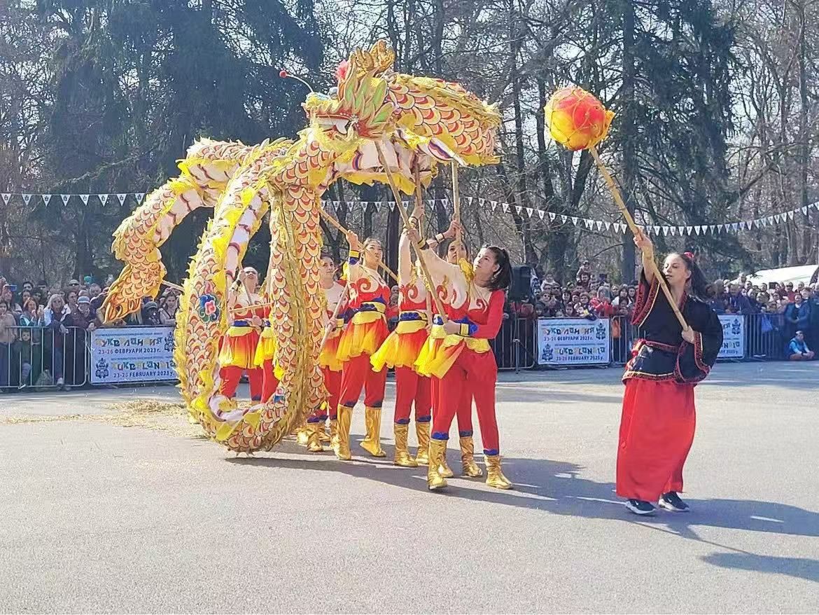 2023年2月,胡凯教授指导的保加利亚大特尔诺沃孔子学院的学生 在Ymbol文化节上表演