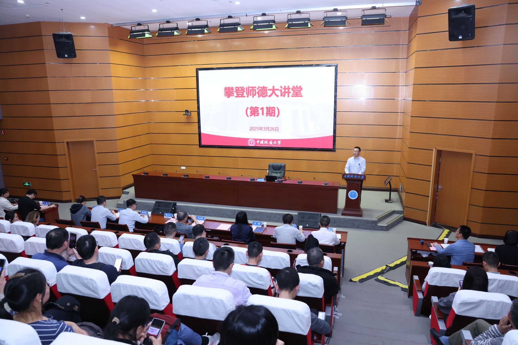 地大新闻网讯 (通讯员 邓锡琴 摄影 焦思勤)3月26日,我校首场“攀登师德大讲堂”在南望山校区举办,特邀国家教学名师、西安电子科技大学刘三阳教授作《良师怎么炼成》专题培训。讲堂由党委教师工作部部长郭上江主持。