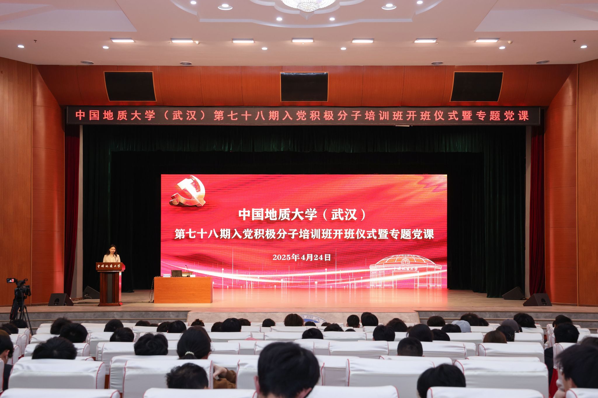 地大新闻网讯(通讯员 王佩 王茂荣 摄影 李锐欣 付章格 申亚菲)4月24日,学校第78期入党积极分子培训班开班仪式暨专题党课以线上线下相结合的方式在两校区同步举行。湖北省委党校中共党史党建教研部副教授刘宁、我校马克思主义学院教授高翔莲分别为全校2200余名入党积极分子讲授专题党课。党委组织部副部长胡肖主持开班仪式。