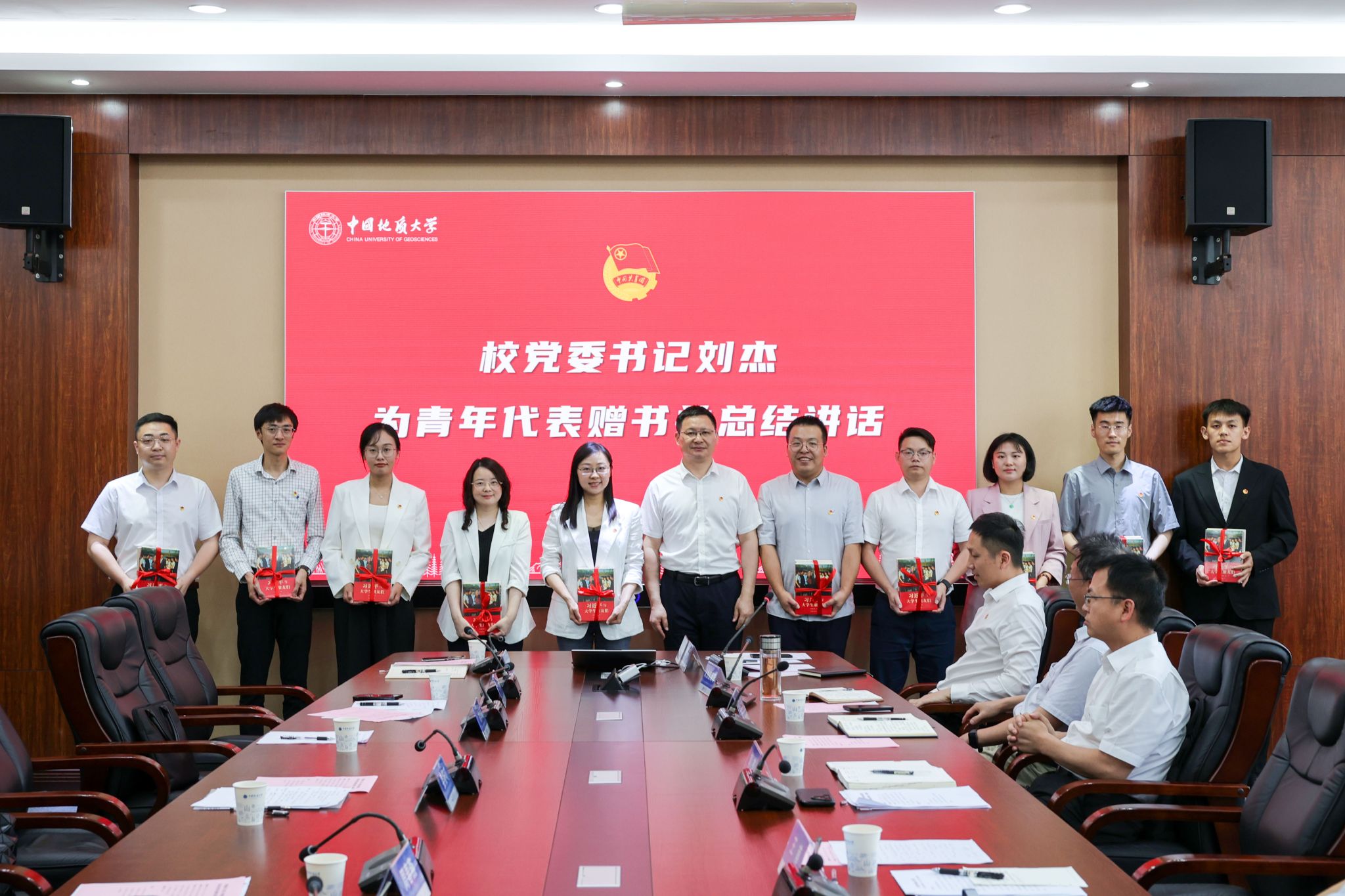 刘杰在为青年代表赠送《论党的青年工作》《习近平和大学生朋友》等书籍,勉励大家以书为友、精研致思,知行合一。