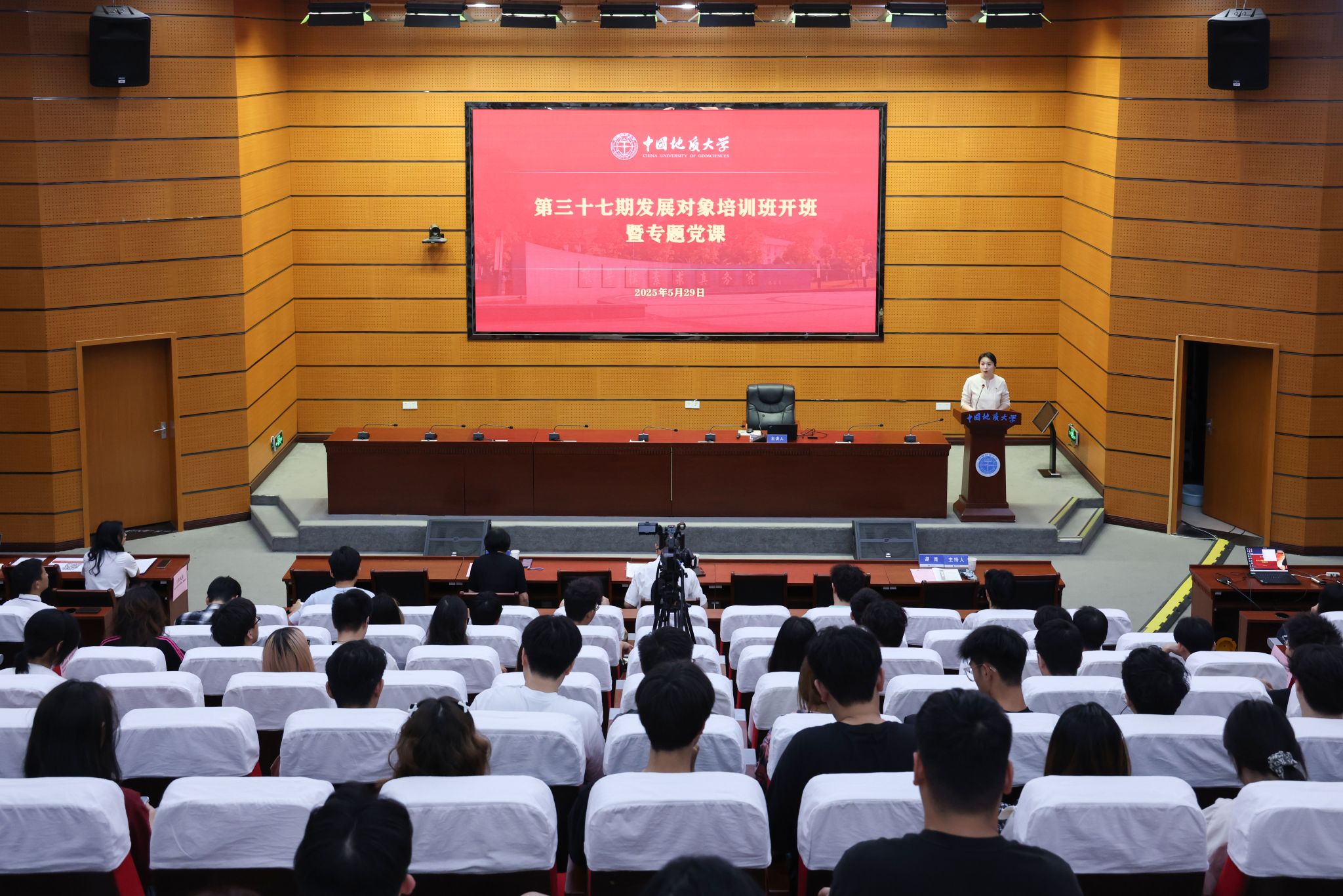 地大新闻网讯(通讯员 王佩 摄影 李锐欣 申亚菲)5月29日,我校第三十七期发展对象培训班开班仪式暨专题党课在两校区同步举行,第三十七期发展对象培训班学员、学生党支部书记近500余人参训。校党委副书记、纪委书记唐忠阳,党委常委、组织部部长陈文武参加开班仪式。党委组织部副部长、党委党校副校长胡肖主持开班。