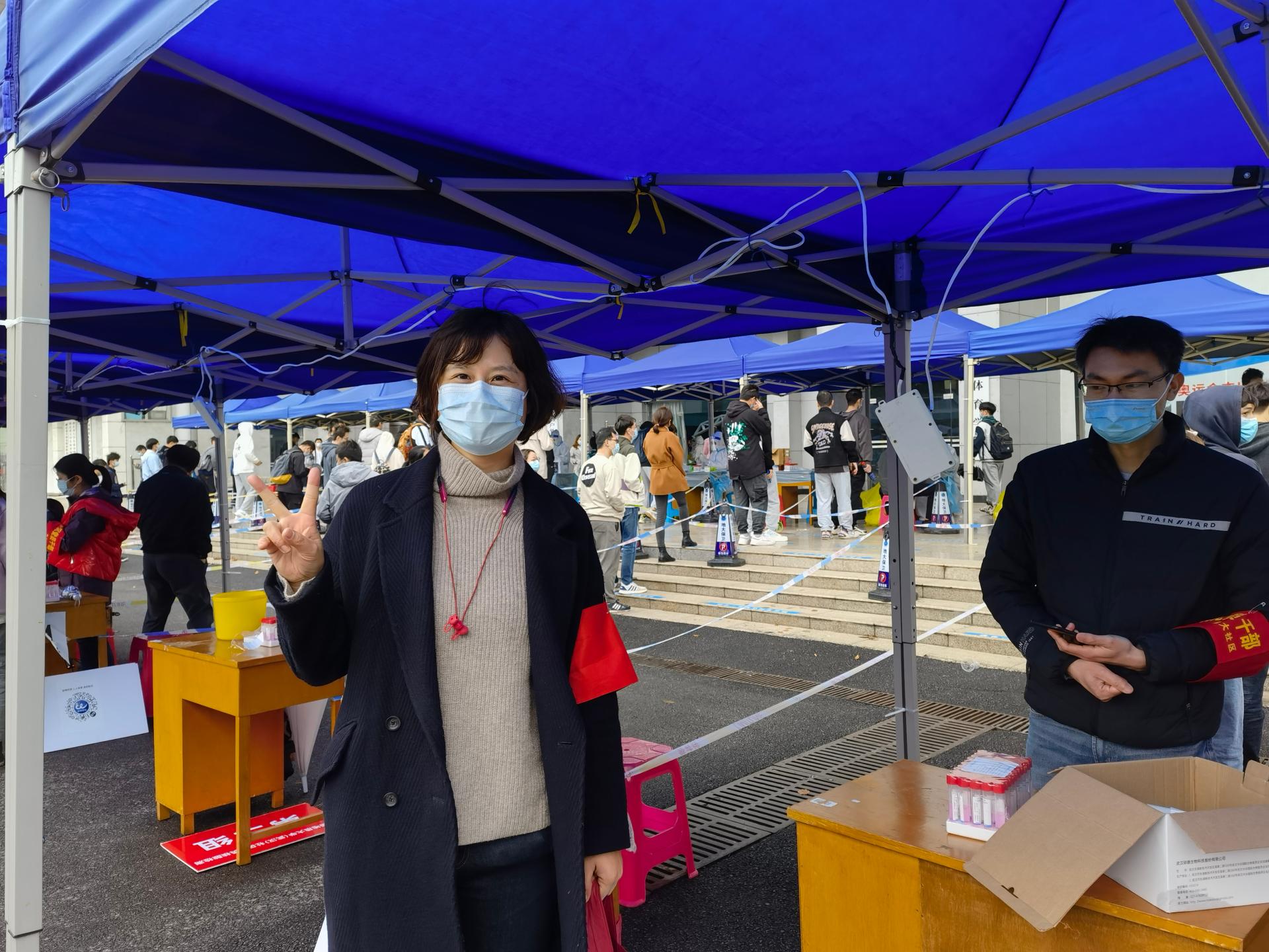 李伟娜(艺媒学院党委):作为一名共产党员,我参加了五次核酸检测志愿者活动。在活动中,我被志愿者和我校师生深深感动。志愿者活动中,尤其是第一次和第七次核酸检测,风雨交加,很多人站在室外冻得瑟瑟发抖。然而,志愿者们裤脚和袖子被雨水打湿,手被冻僵冻红,依然热心地、细心地完成信息录入和引导工作,尤其是遇到老人和小孩,更是耐心讲解输入信息操作流程。参与核酸检测的师生都自觉地、井然有序地配合志愿者和医务工作者顺利完成采样任务,每次都在五个小时内,完成采集全校3万多份核酸检测样本。此景此情,感动之情油然而生,党员同志迎难而上,全体师生紧密配合,给本有寒意的初春融入一丝暖意,只要我们团结、热心,做好志愿服务,就没有任何困难能够难倒我们。