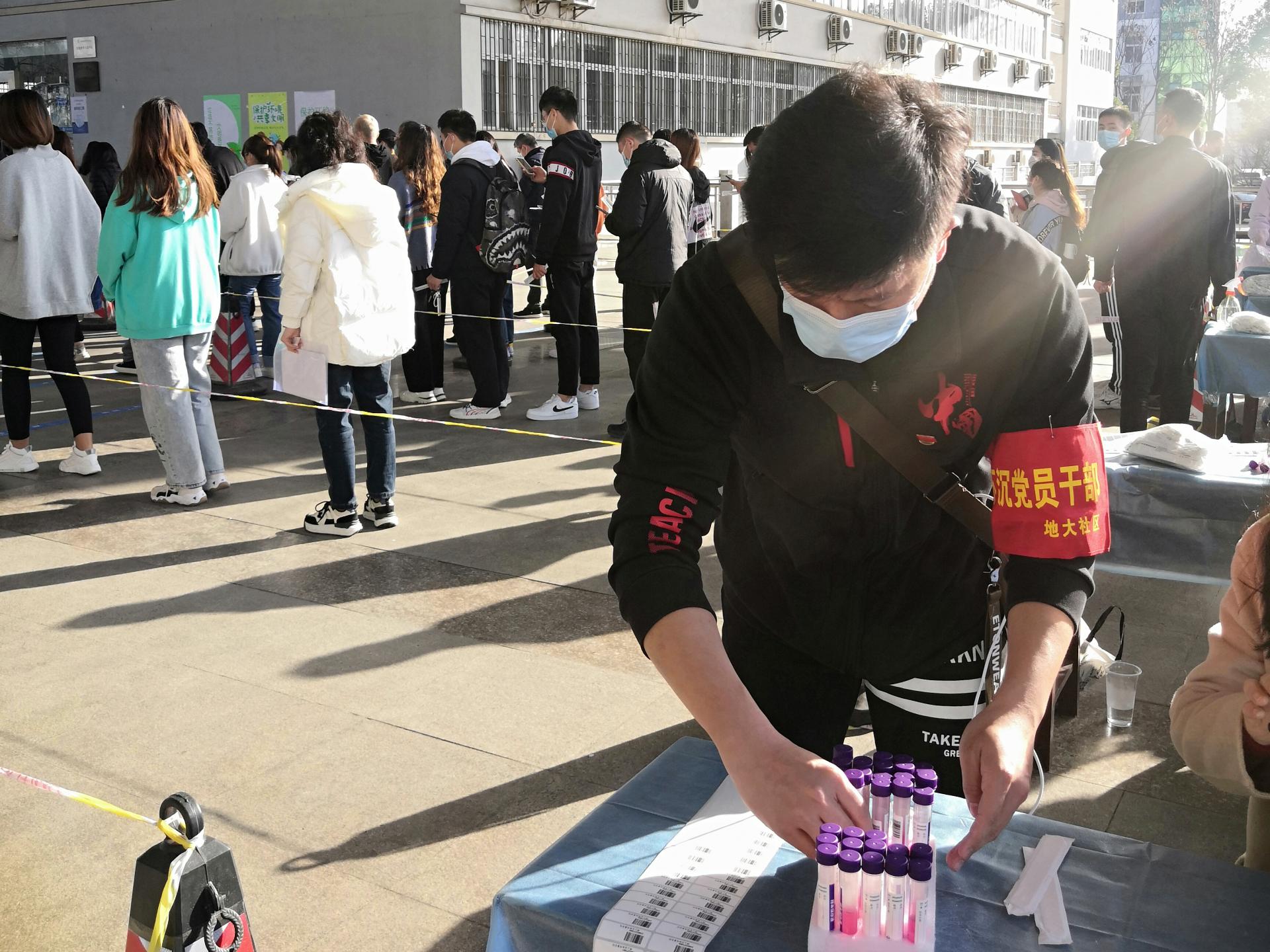 开学至今,学校南望山校区进行了八轮全员核酸检测,未来城校区进行了十三轮全员核酸检测。在此过程中,党员同志始终冲锋在前,承担了布置场地、数据录入、师生引导、秩序维护等大量工作,党徽在疫情防控一线熠熠生辉,党旗在疫情防控一线高高飘扬,为学校顺利完成核酸检测工作提供了坚实保障。