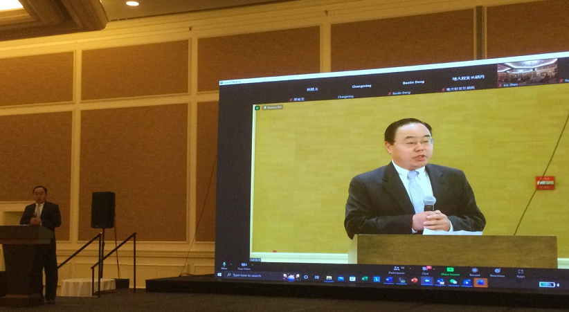 加拿大校友会会长冯建德代表海外校友会致贺词。他欢迎美国校友会与地大各校友会共同建设全球校友共同的“加油驿站”,合力打造让广大校友和母校共享情谊,共谋发展的服务平台和精神家园。
