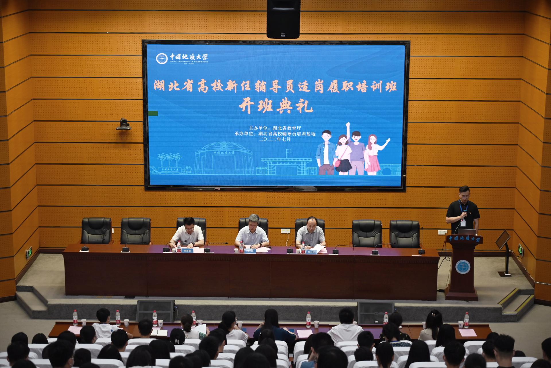 地大新闻网讯(通讯员 熊程 姚琳 朱佳斯)7月17日,由湖北省教育工委、湖北省教育厅主办,湖北省高校辅导员培训基地承办的2022年湖北省新任辅导员试岗履职培训班,在我校南望山校区开班。副校长王华、湖北省教育厅思政处有关负责人参加开班典礼,党委学工部部长邬海峰主持典礼。来自全省77所高校的近300名辅导员,将在学校参加为期一周的集中培训。