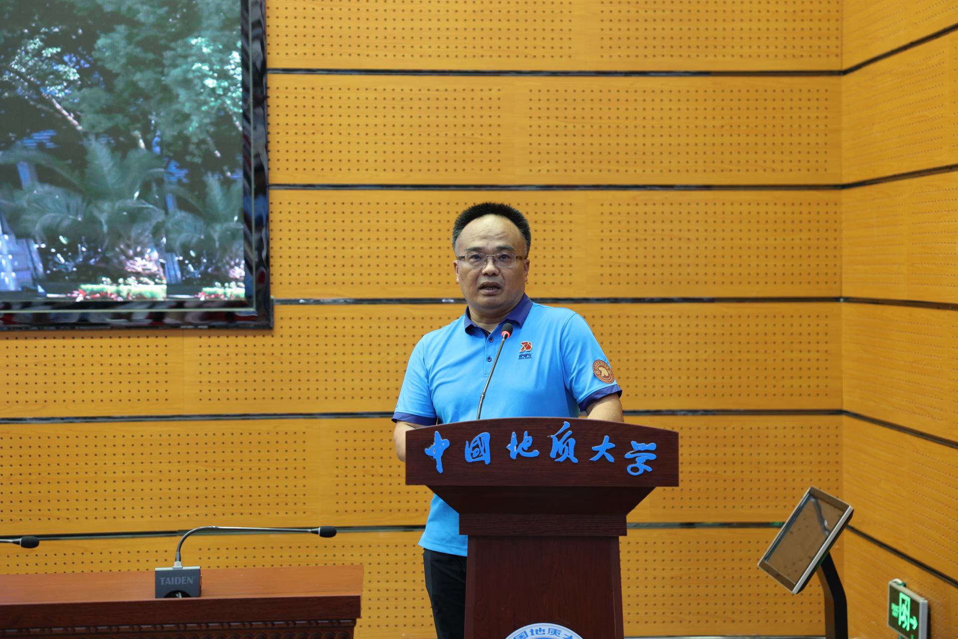 地大新闻网讯(学生记者 买琛 摄影 高雅)7月13日,我校“第二次大学生长江源科考”项目迈橙捐赠仪式在东区综合楼A0113举行。副校长赖旭龙,捷美集团董事长、我校校友张伟,部分科考师生、体育学院全体班子成员、教师及学生代表等参加捐赠仪式。体育学院党委书记庞岚主持捐赠仪式。