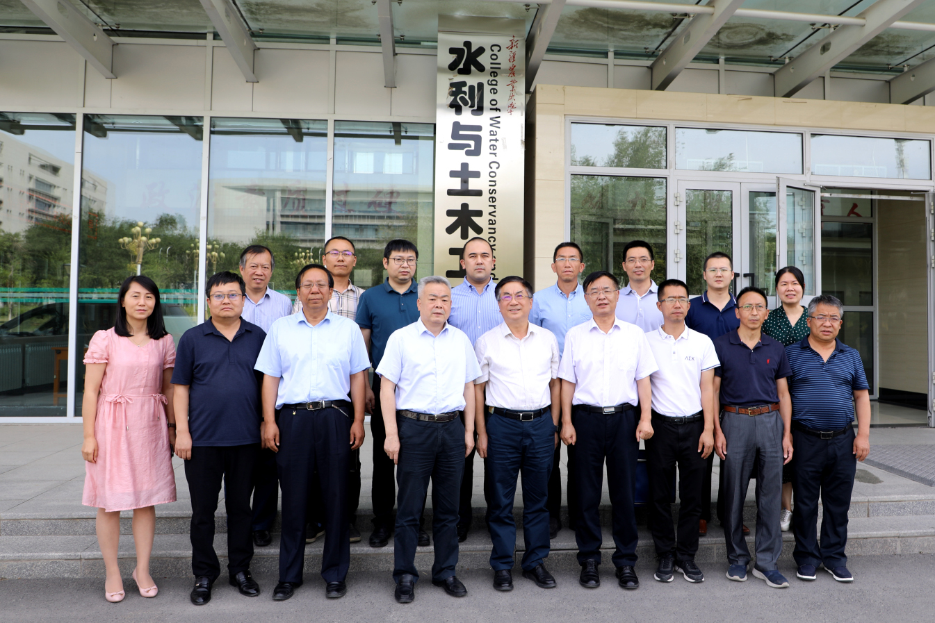 在新疆农业大学,双方互致建校七十年祝福。王焰新为在校环境、水利、资源专业师生分享了自己的研究成果,他表示两校之间要建立有组织、常态化合作机制,在人才培养、高层次人才引进与互聘、科技项目申报研究等开展合作,努力建设服务新疆自然资源事业的新支点,打造校际合作和对口支援的典范。