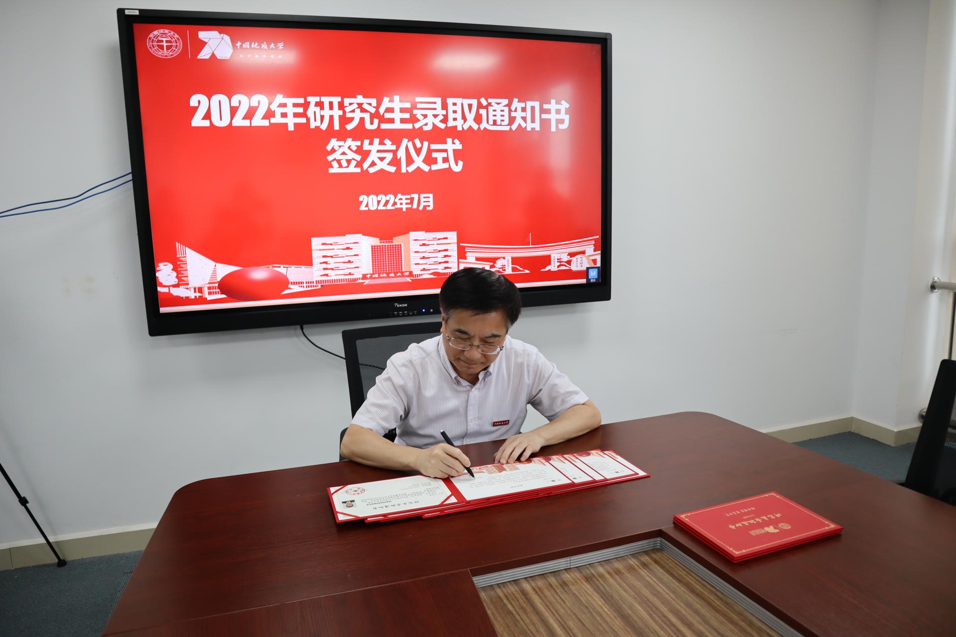 地大新闻网讯(通讯员 贾启元 洪军 柴辛娜 刘梦)7月4日,校长王焰新院士亲笔签发我校2022年70周年校庆特别版研究生录取通知书,他向2022级研究生新生表示祝贺并深情寄语、勉励大家“守初心、立大志、明大道、有大爱,培育人生大格局,在做一流学问、创一流成果、成一流人才的路上永不止步、不懈攀登”。