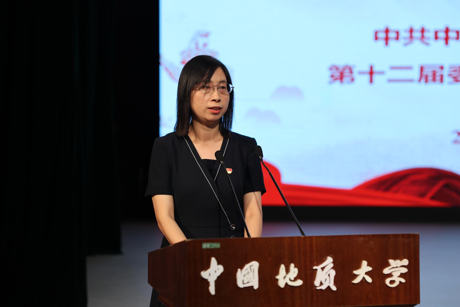 黄晓玫作巡察工作总结报告。她全面回顾了过去五年学校党委巡察工作的总体情况和工作成效,系统总结了巡察发现的共性问题,分析了产生相关问题的原因。她指出,各项成绩的取得,在于以习近平新时代中国特色社会主义思想为指导,落实习近平总书记关于巡视巡察工作重要讲话精神,也得益于全校党员干部和广大师生自觉提升政治站位,统一思想认识、主动履职尽责、真抓实干。她强调,要敢于直面问题,勇于自我革命。