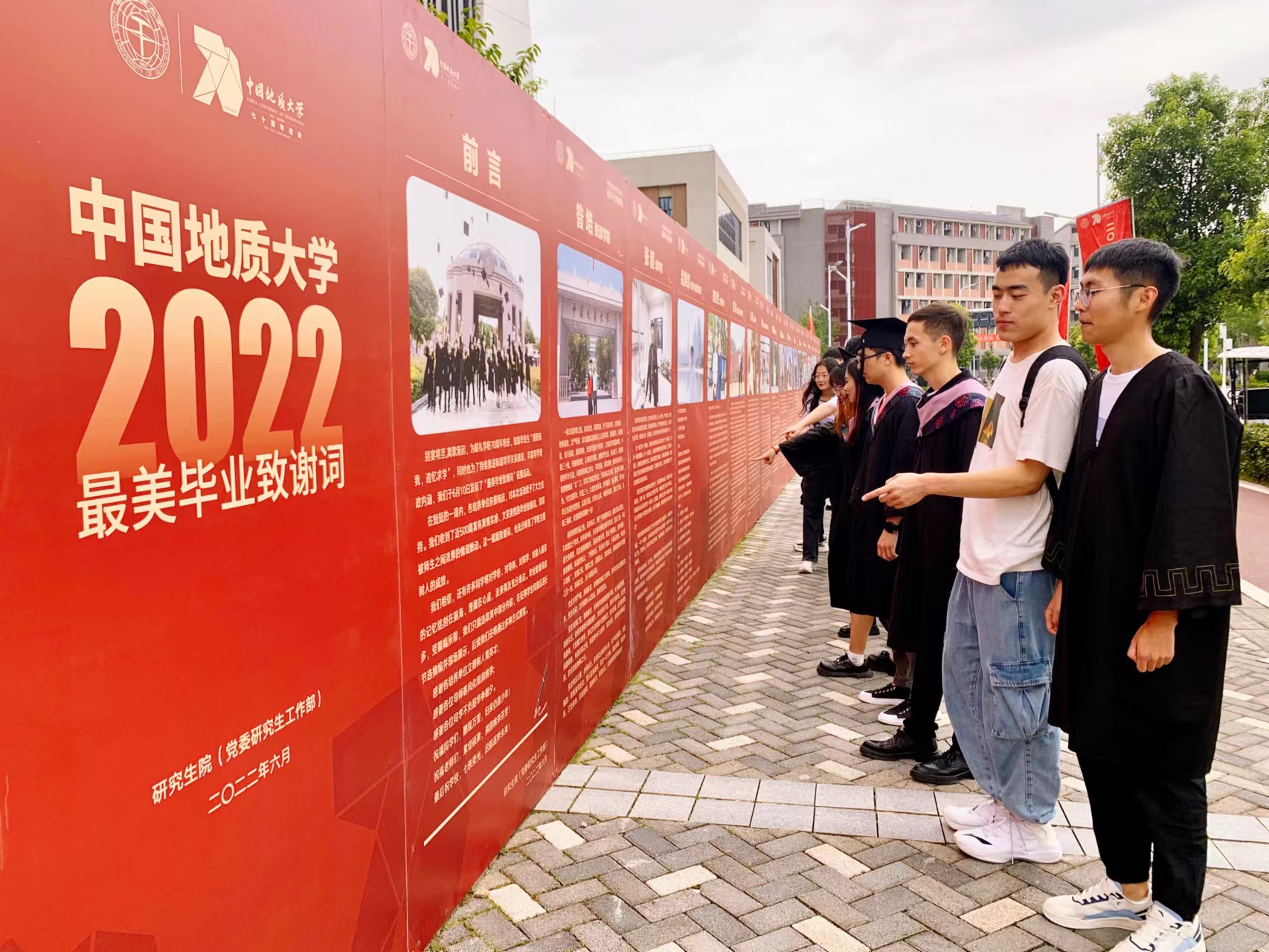 地大新闻网讯(记者 庞伟红 通讯员 马昕昀)6月22日至26日,我校在南望山校区和未来城校区同时推出“2022毕业生最美致谢词”,美观大方的展板文图并茂,尽显毕业生对母校和导师的满满深情,来自各教学和科研单位富有真情实感、文采斐然的毕业致谢词吸引了师生们的关注。