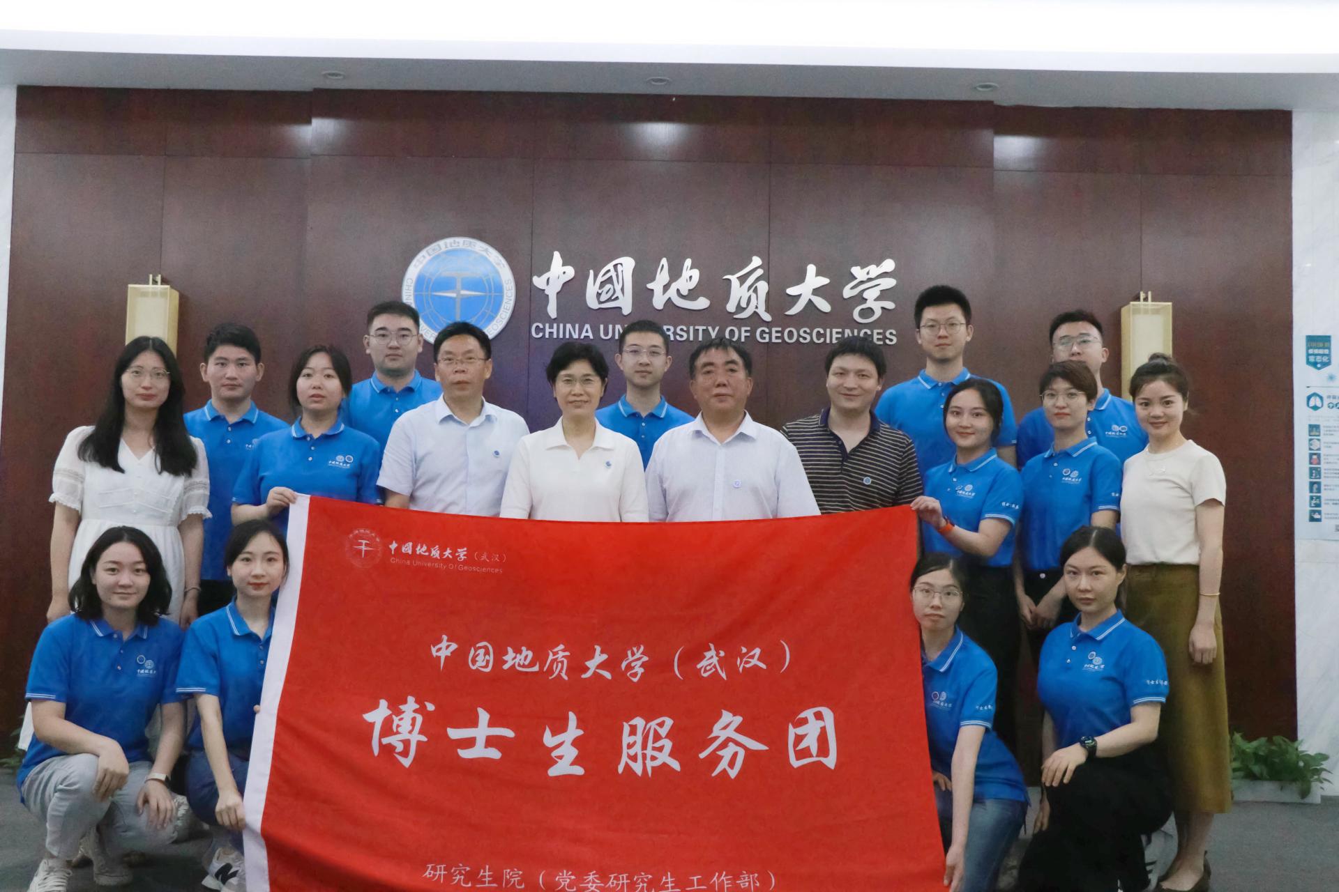 校党委书记黄晓玫与博士生服务团成员亲切合影,她要求:博士生服务团要到基层锻炼中成长、到人民群众中去汲取营养,把地大的校训精神和优良学风展现到实践一线;充分发挥地大博士生的自身专业优势,坚持理论联系实际,更好地服务群众、服务武汉发展;要以谦逊的态度,向基层学、向同事学、向群众学,在实践活动中收获实实在在的成果,在服务社会、服务国家的行动中实现个人价值。