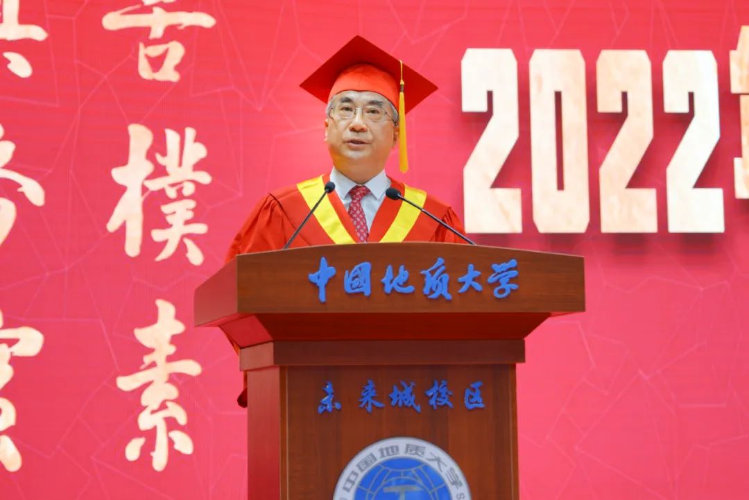 这几年,你们在扎根向上、不断成长的同时,学校和你们一样只争朝夕,丝毫不敢懈怠,锚定地球科学领域世界一流大学的目标,爬坡过坎、奋力前行:我们迁汉后二次创业,建成未来城校区并投入使用,有效拓展了学校办学空间,为这所伟大学校的事业长青奠定了新基石;我们聚焦国家需求,描绘了美丽中国·宜居地球的发展蓝图;我们持续优化学科生态,高质量达成首轮“双一流”建设目标,高起点启动新一轮“双一流”建设任务;我们锐意进取,推动更深层次改革、更高水平开放,努力实现更高质量发展。我们不断完善“三融合”本科人才培养模式,构建“三融三跨”的高质量研究生教育体系,就是为了供给更优质的教育资源。我们推行主辅修制,就是想即使学校日子紧一点、老师辛苦一点,也要让你们多学一点;我们严格论文查重、盲审、答辩等各环节,就是想即使论文虐你千百遍,也要让你们的过往和经历都能经受得住历史的检验;我们坚持“严在地大”,就是想现在你们多吃点苦,以后尽量少遭些罪。我知道你们期待:通识教育课程可选择再多一点、实践教学再强一些、上课安排离寝室再近一些、住宿生活条件再好一点、文化体育设施再齐全一些、出入校门再便捷一些……这些将鞭策我和我的同事们努力、再努力一些!从今天起,我们会不断提醒我们自己,地大校友又新增了7000多双眼睛将时刻盯着我们!