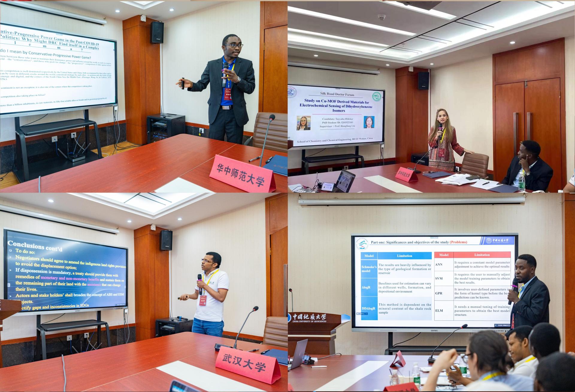 复旦大学的尼日利亚籍博士研究生金斯利、西安交通大学的巴基斯坦籍博士研究生哈米德、吉林大学的巴基斯坦籍博士研究生哈桑、华中师范大学的刚果(金)籍博士研究生马瓦蒂、浙江大学的巴基斯坦籍博士研究生艾哈迈德、华中科技大学巴基斯坦籍博士研究生塔雅芭、武汉大学的埃塞俄比亚籍博士研究生加勒塔、我校的坦桑尼亚籍博士研究生阿尔文等等,结合在各自研究领域的新进展,进行了学术交流。