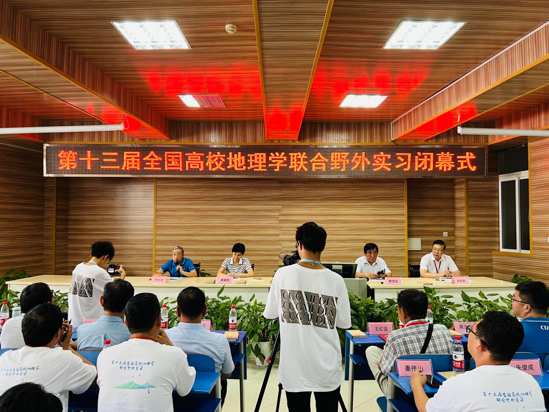 地大新闻网讯(通讯员 徐惠孝 许艳琦)8月9日,第十三届全国高校地理学联合野外实习闭幕式在我校秭归产学研基地举行。教育部高等学校地理科学类专业教学指导委员会副主任、全国高校地理学联合野外实习联盟理事长、华东师范大学地理科学学院郑祥民教授,全国高校地理学联合野外实习联盟秘书长、华东师范大学地理科学学院副院长周立旻教授,北京大学、南京大学、西北大学、华南师范大学、湖南师范大学、西南大学、鲁东大学、信阳师范学院、泉州师范学院、湖北科技学院等高校专家学者,我校党委书记黄晓玫,副校长赖旭龙,本次联合野外实习的总负责人李长安教授,学校相关部门和学院负责人等参加闭幕式。