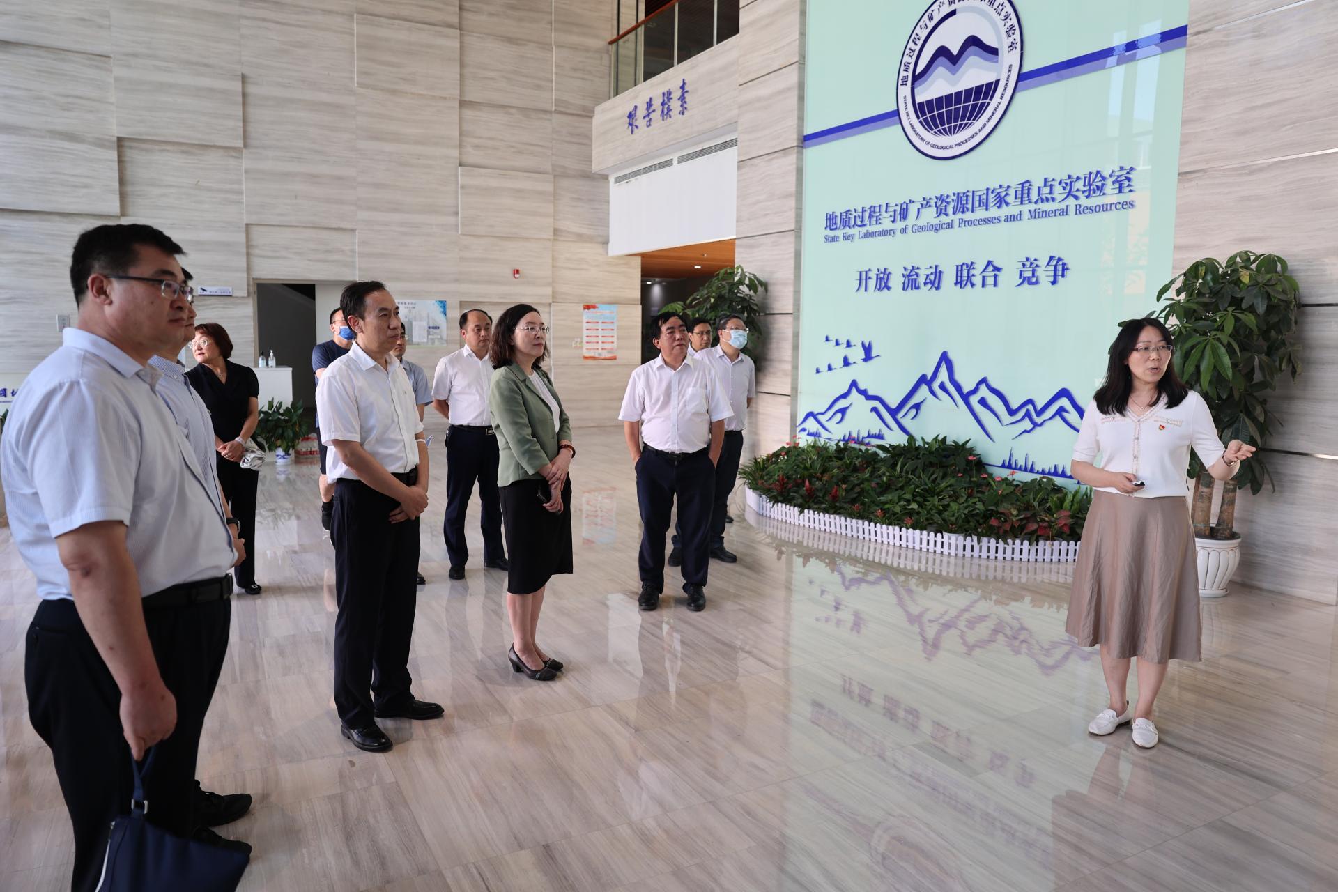 侯慧君一行调研了地质过程与矿产资源国家重点实验室和生物地质与环境地质国家重点实验室。陈中强教授和王璐研究员,分别介绍了两个国家重点实验室的基本情况、定位和目标、承担的重大任务、标志性成果、研究队伍与平台建设等。