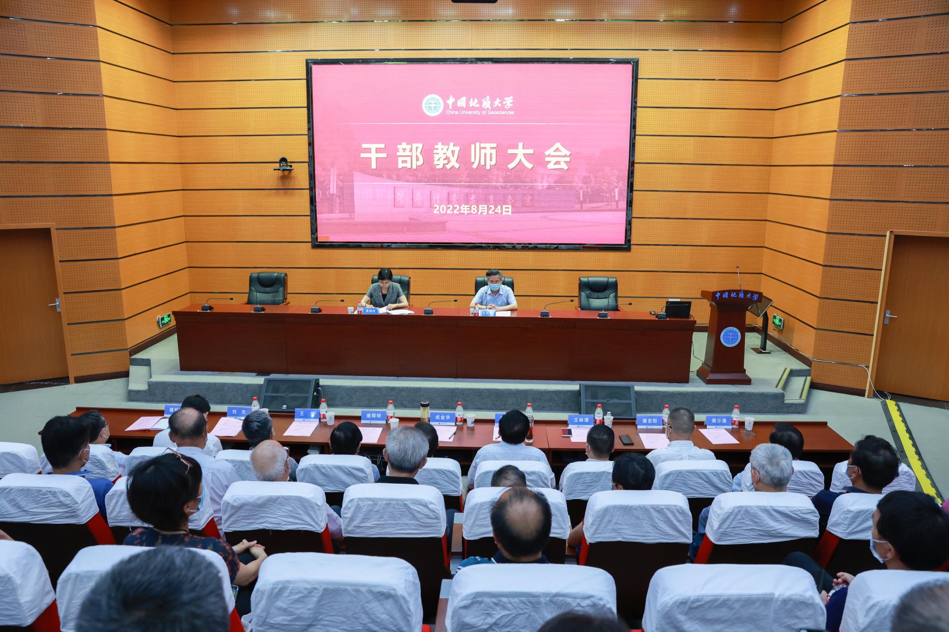 地大新闻网讯(记者 赵婧萱 摄影 王俊芳)8月24日,我校在南望山校区教学综合楼举行干部教师大会。全体校领导、党委常委、校长助理,党委委员、纪委委员,全体中层干部,教师代表,市级以上党代表、人大代表、政协委员,民主党派负责人,离退休老同志代表等参加会议。校党委书记黄晓玫主持会议。