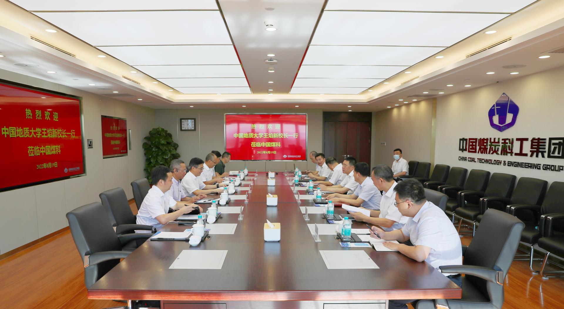 在中煤科工集团,中国煤科党委书记、董事长胡善亭,党委副书记赵玉坤,总会计师赵寿森,副总经理熊代余、刘见中等与校长王焰新、副校长刘勇胜等会谈,双方就科技平台开放共享、人才双聘、成果转移转化等达成共识。